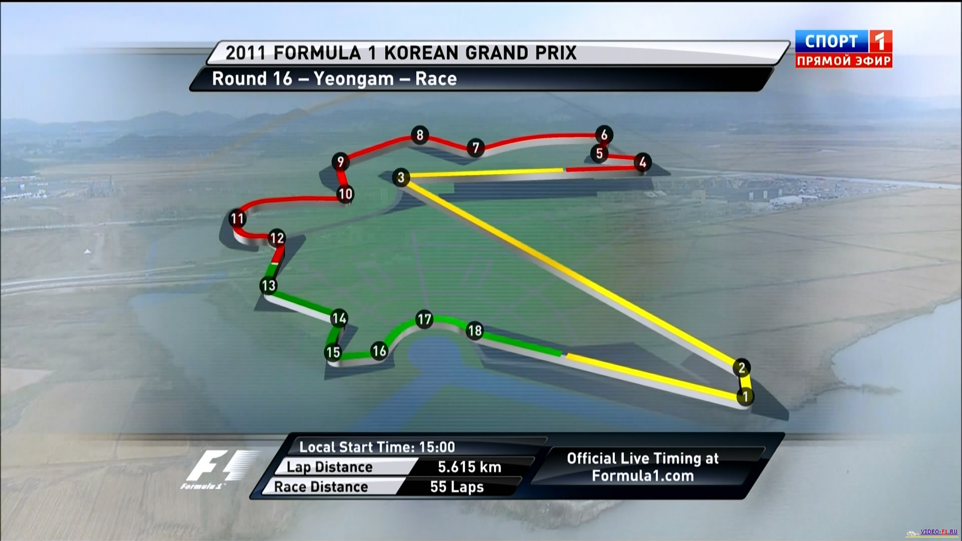 Формула 1 - 2011 - Этап 16 - гран-при Корея - ГонкаФормула 1 - Гран-при Корея - Гонка - СкачатьСезон 2011 года - Этап 16 (Йонгам, 16 октября 2011 года) 2011 FORMULA 1 KOREAN GRAND PRIX Round 15 - Korea - Yeongam - Race Video Гран-при Корея (Йонгам) - Гонка - скачать видео гонки Гонка в обычном разрешении SATRip, гран-при Кореи на трассе в Йонгам добавлена для скачивания 20 октября 2011 года Температура воздуха - 21 C Температура трассы - 25 C Влажность - 50% Скорость ветра - 5.8 m/s Посмотреть бесплатно 3 минутный ролик самых интересных моментах в течении гонки гран-при Кореи 2011 годаКанал: Спорт 1 Продолжительность: 2 часа 24 мин Комментарий: Русский (Алексей Попов) Размер файла: 1.8 Gb Формат: AVI Видео: 720х400 (16:9) , 25.000 fps, 1700 kbps Аудио: 48 kHz, 2 ch, 128 kbps (гонку в HD качестве (размером около 10 Gb) можно скачать - Здесь) (квалификацию можно скачать - Здесь) ______ ___ __ _ _ Скачать видео Формулы-1 - гонку гран-при Корея (Йонгам) 2011 года в качестве SATRip (Без рекламы, одним файлом)(Download gran-prix Korean (Yeongam) race) Вы смотрите Формула 1 - 2011 - Этап 16 - гран-при Корея - Гонка