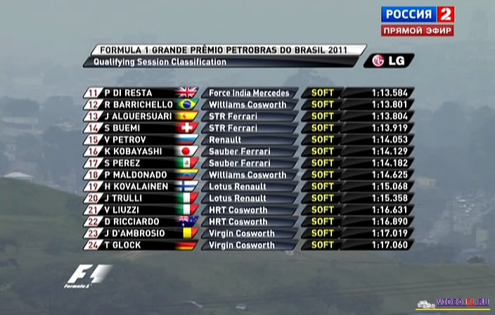 Формула 1 - 2011 - Этап 19 - гран-при Бразилия - КвалификацияФормула 1 - Гран-при Бразилия - КВАЛИФИКАЦИЯ - СкачатьСезон 2011 года - Этап 19 (Сан Паоло, 26 ноября 2011 года) FORMULA 1 GRANDE PRÊMIO PETROBRAS DO BRASIL 2011 Round 19 - Brasil - Sao Paolo - Qualifying Гран-при Бразилии (Сао Паоло) - Квалификация - скачать видео квала Канал: Спорт 1 Продолжительность: 1 час 03 мин Комментарий: Русский (Алексей Попов) Размер файла: 0.9 Gb Формат: AVI Видео: 704x448 (1.57:1), 25 fps, ~1798 kbps avg Аудио: MP3, 48 kHz, 2 ch, 128.00 kbps ______ ___ __ _ _ Скачать видео Формулы-1 - квалификацию гран-при Бразилии 2011 года в обычном SATRip качестве (Без рекламы, одним файлом)(Download gran-prix Brasil qual) [sms_1] Ссылка на видео -> СКАЧАТЬ После открытия нажать DOWNLOAD и выбрать путь сохранения файла. [/sms_1] Вы смотрите Формула 1 - 2011 - Этап 19 - гран-при Бразилия - Квалификация