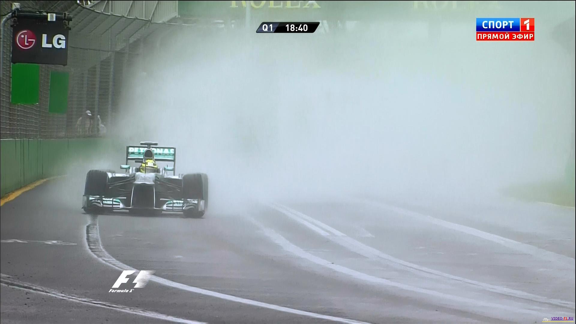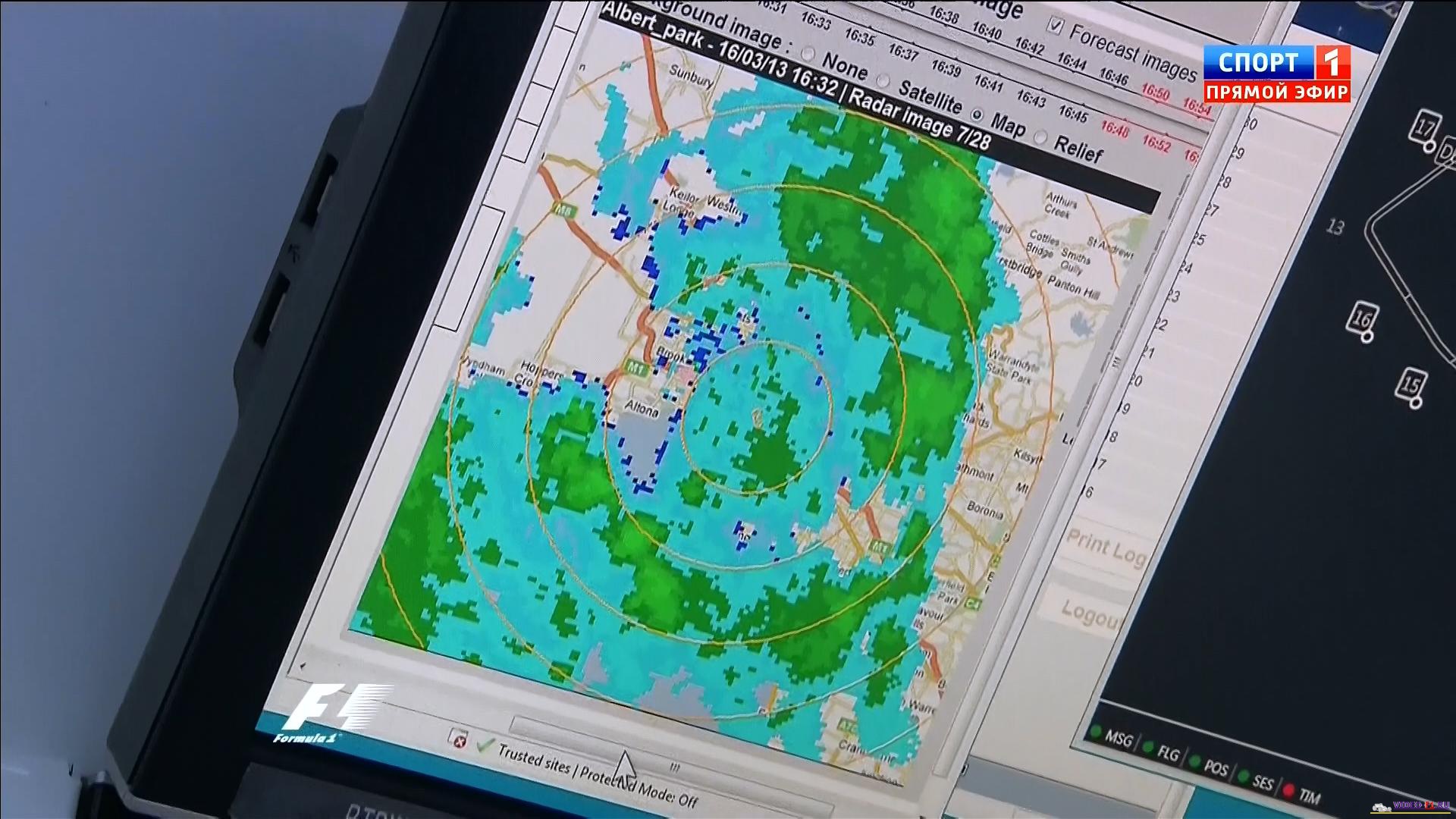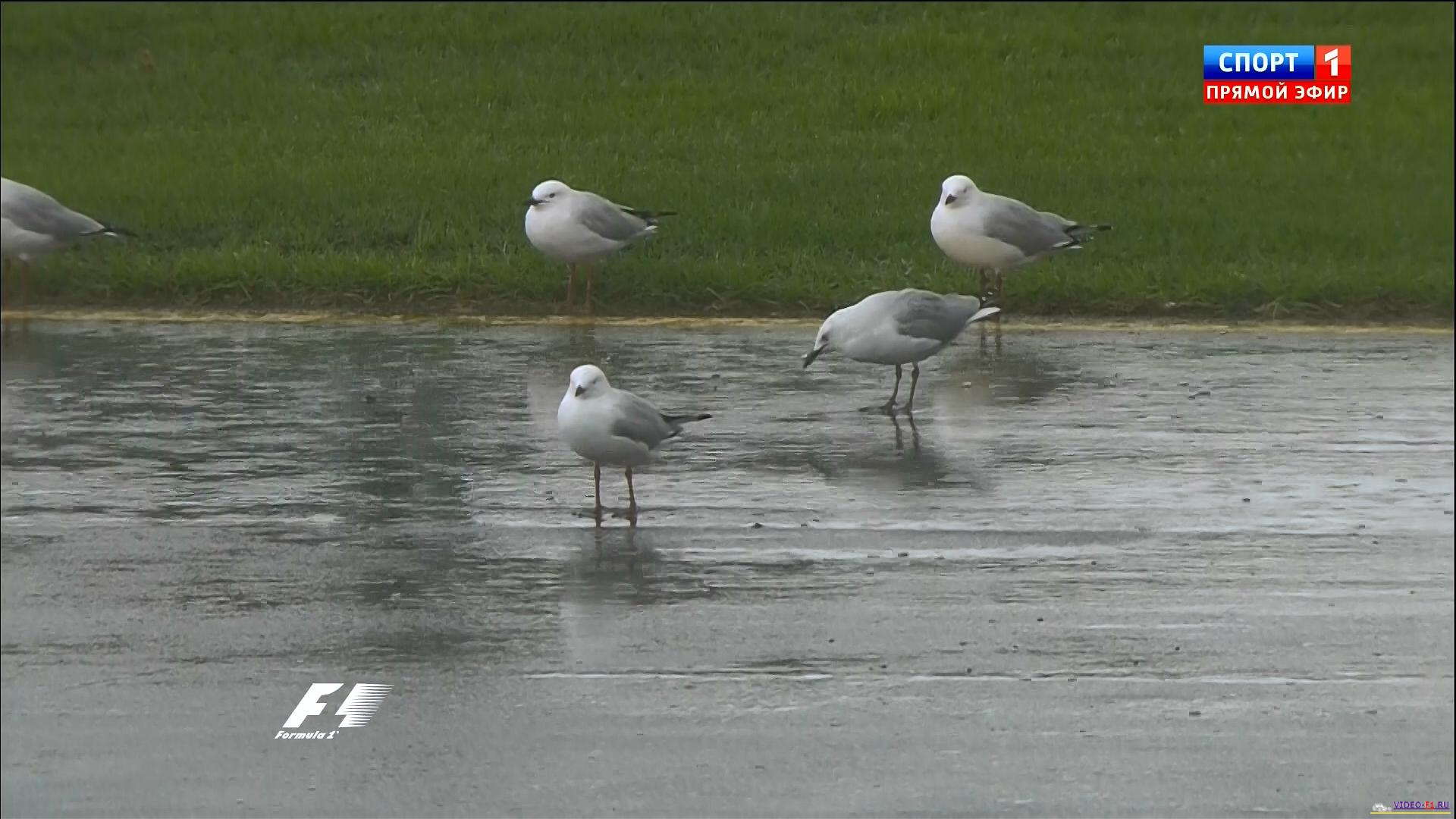 открытие нового сезона Формулы 1 2013 экран радара показывает дождь очень плохая погода в Мельбурне трасса квала Австралии 2013 австралийские птички на трассе очень мокрая трасса много вылетов и разбитых носовых обтекателей Массу развернуло  наушники пилотов формулы-1 Башня Эврика
