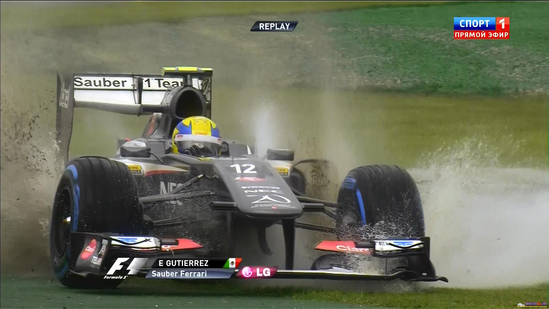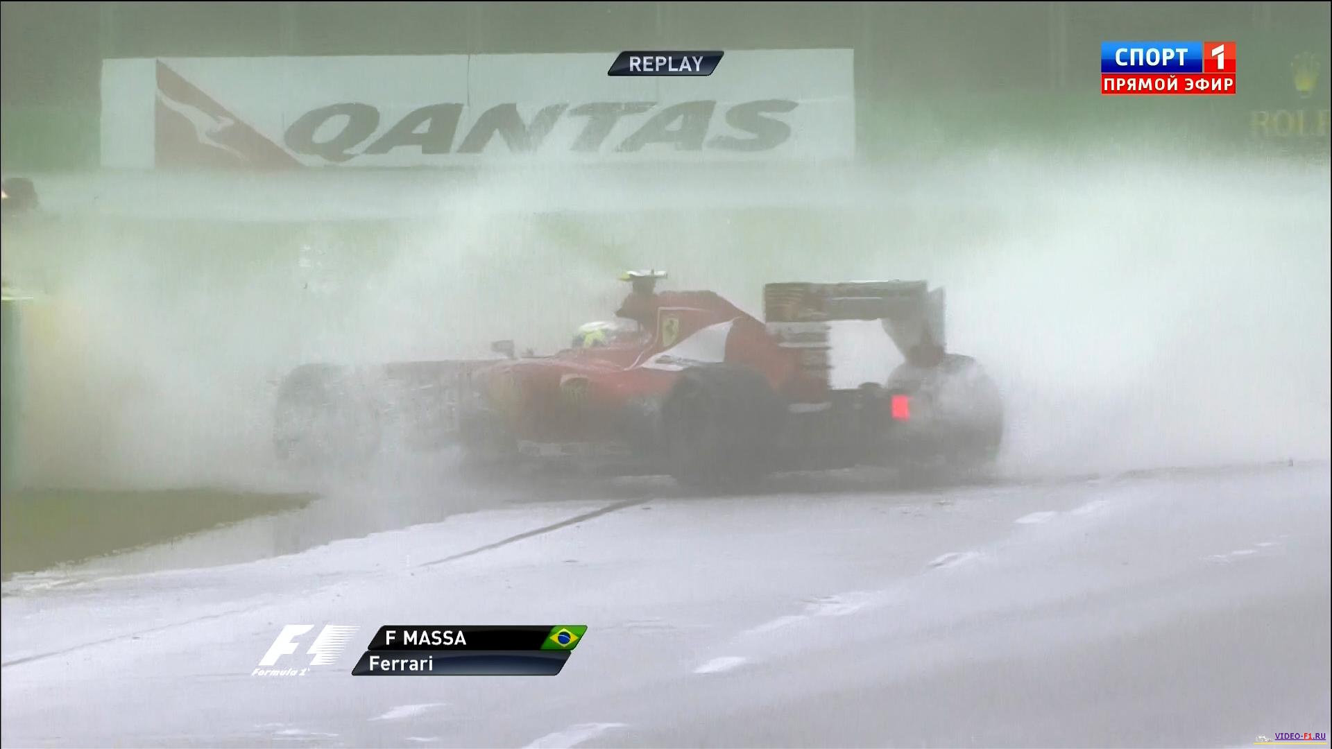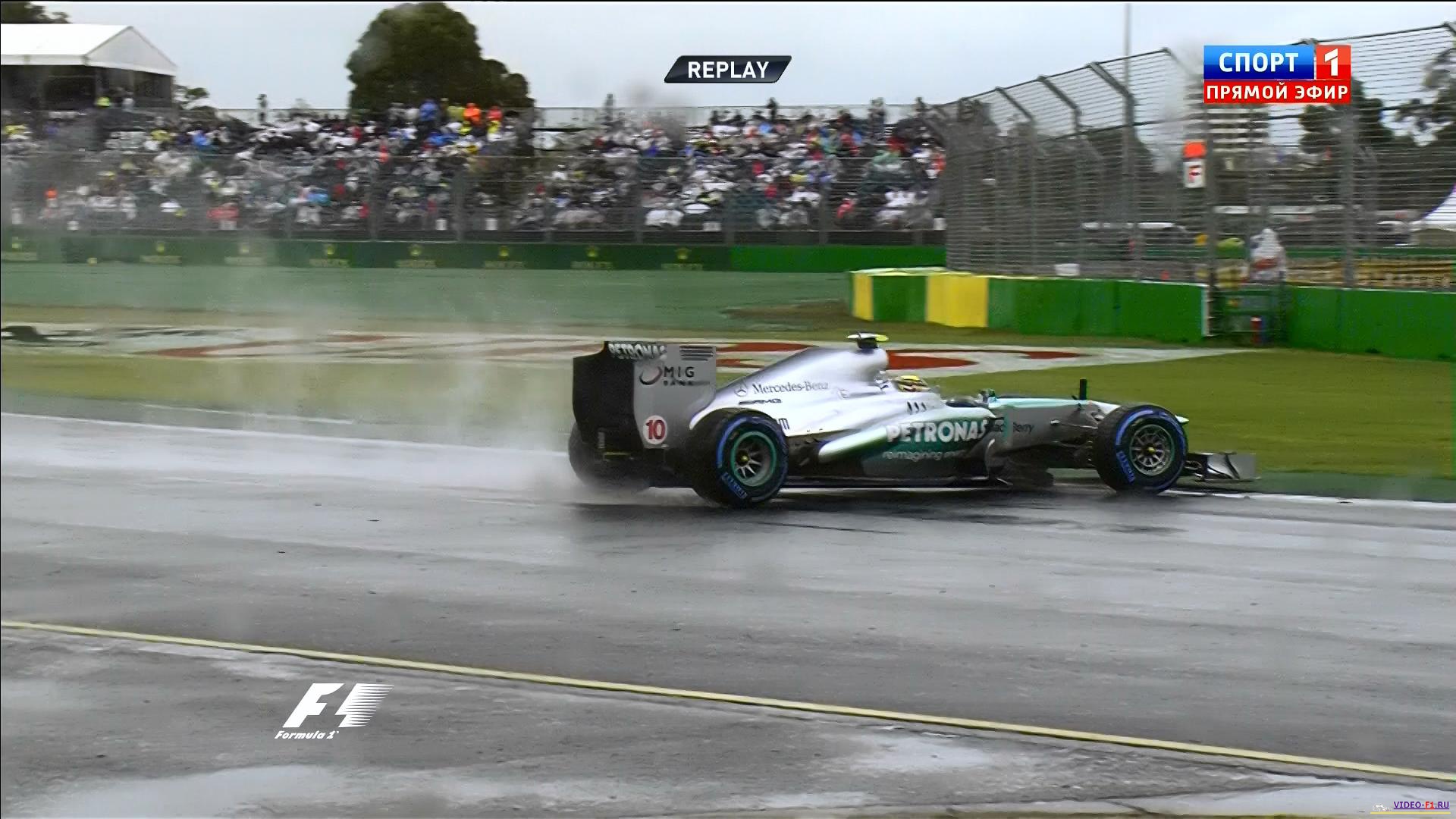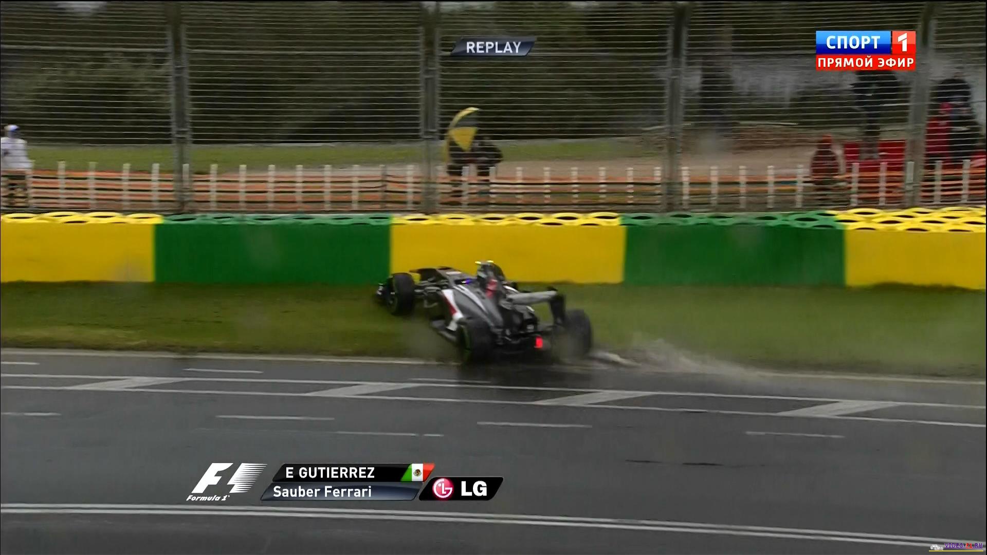 открытие нового сезона Формулы 1 2013 экран радара показывает дождь очень плохая погода в Мельбурне трасса квала Австралии 2013 австралийские птички на трассе очень мокрая трасса много вылетов и разбитых носовых обтекателей Массу развернуло  наушники пилотов формулы-1 Башня Эврика