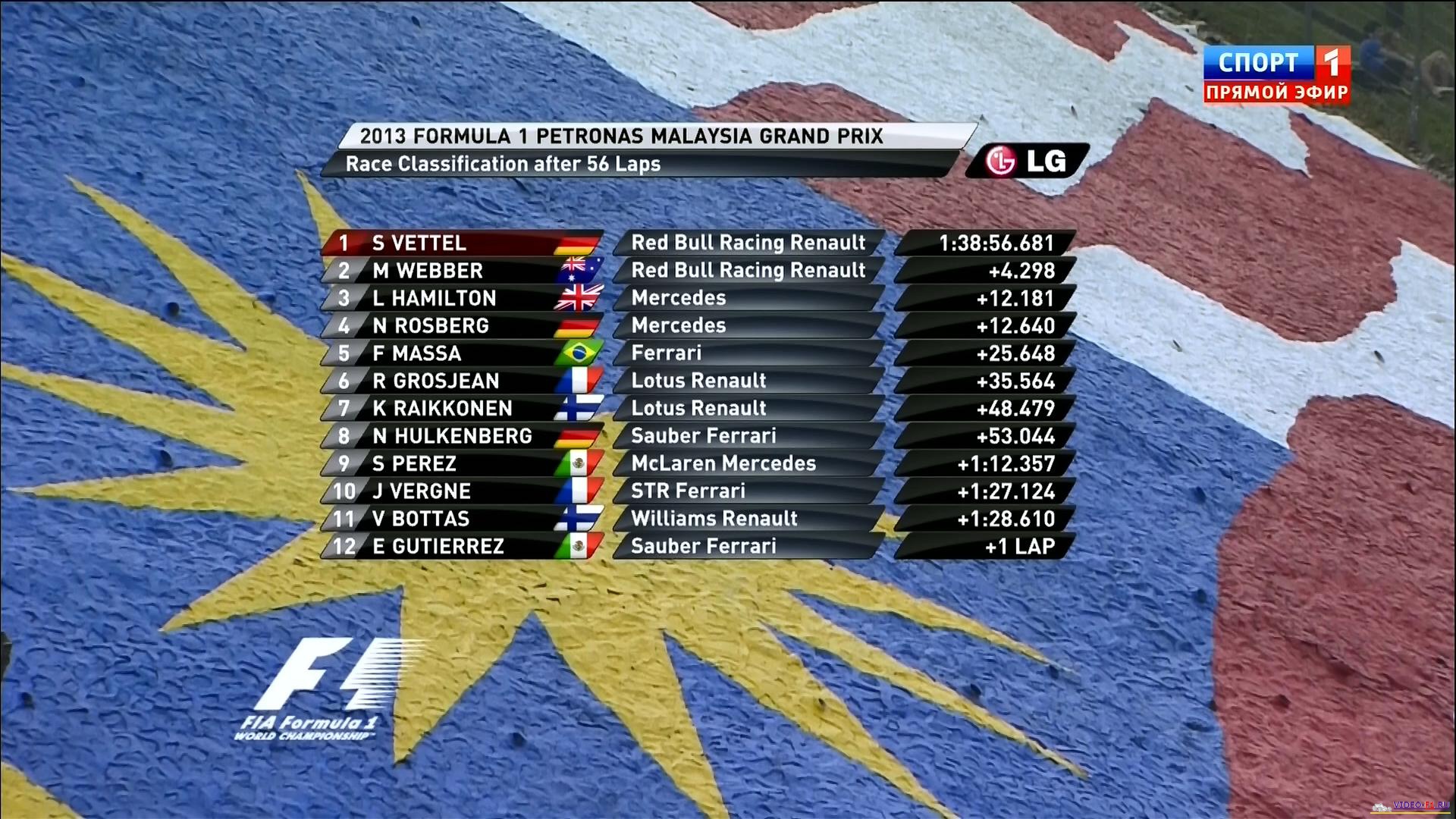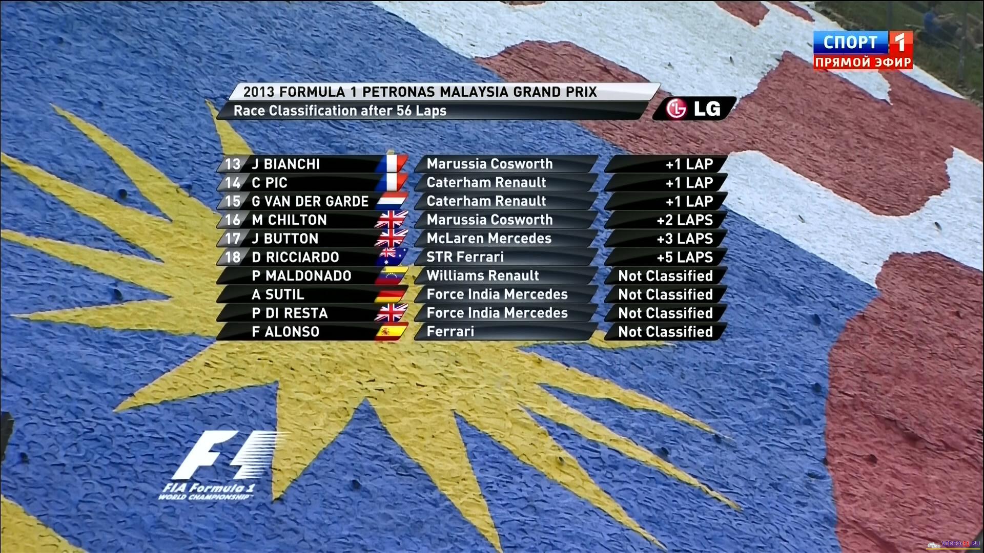 Вы можете смотреть гонки формулы 1 2013 сезона на нашем сайте только для ознакомительного эффекта, полную версию гонки вы можете посмотреть на сайте телеканала, который транслирует эти гонки.. |