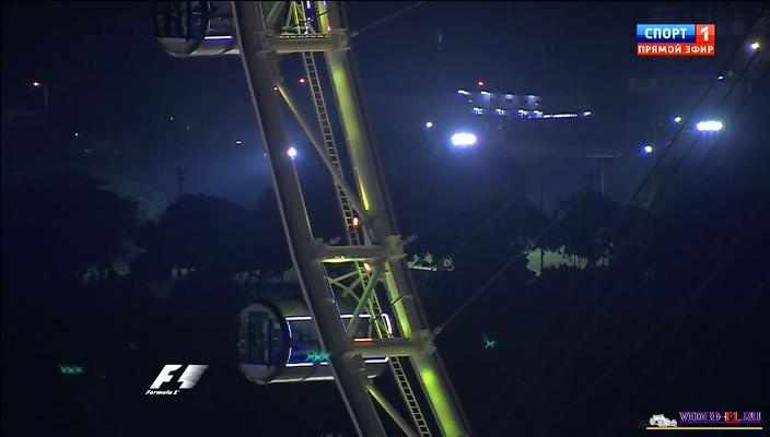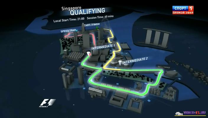 Описание квала ф1 на трассе по ночным улицам города Сингапура: Трасса, которая не перестает нас удивлять вот уже 6-й год подряд. Ночные гонки, длящуюся почти 2 часа. Колесо обозрения Сингапур, самое высокое колесо в мире, совершает свой оборот за 30 минут и за это время можно увидеть весь город-государство. Он по размеру всего 800 кв км, это меньше чем территория города Москвы и живет здесь всего 5 млн. Однако Сингапур расположен стратегически идеально, в Малакском проливе, между Малайзией и Индонезией. Залив Марина Бэй. После Монако это вторая городская гонка, но с искусственным освещением. 10 поворот поменялся в этом году на гран-при Сингапуре и стал он более быстрым.
