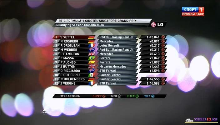 Вы смотрите: Формула 1 сезон 2013 этап 13 Сингарпур квалификация