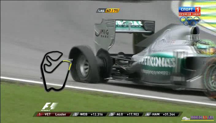 Описание гонки ф1 на трассе гранпри Бразилии : 19-й заключительный этап чемпионата мира Формулы-1 2013 года. Автодром Интерлагос, в сердце бразильского мегаполиса Сан-Пауло. Раньше тут было аж 8 км длина, но теперь всего 4 с небольшим километра. В следующем году возможно трасса уже будет изменена, будет перенесена стартовая прямая. Трасса старой школы, настоящий гоночный автодром, непредсказуемая погода, сумасшедшая торсида. Масса в последней гонке за феррари, в следующем году уходит в Вильямс. А для Марка Веббера это вообще последняя гонка в карьере Формулы-1. Последний год болиды с двигателями V8 2.4 литра (эра 8-цилиндровых болидов закончилась). Масса болида 640 кг. В следующем году болид формулы 1 будет весить 690 кг. Классные видео с поворотной камеры на болидах. Ботас в переговорах обматерил Хэмильтона за то, что тот ****ing man вытолкнул его с дистанции и гонки. Веббер на круге после гонки даже снял шлем в честь своего ухода.