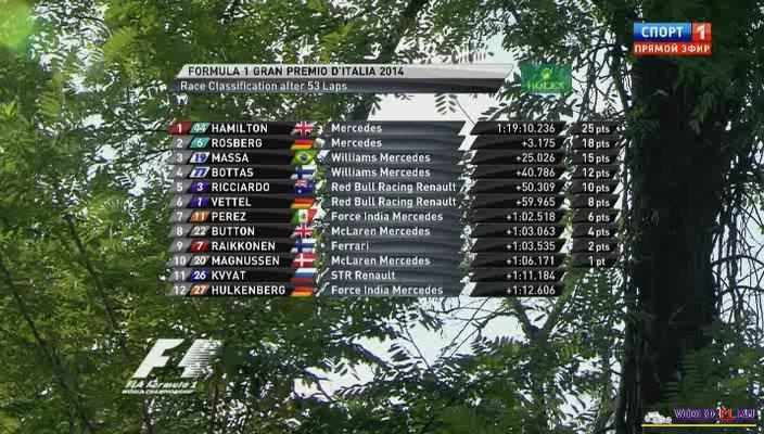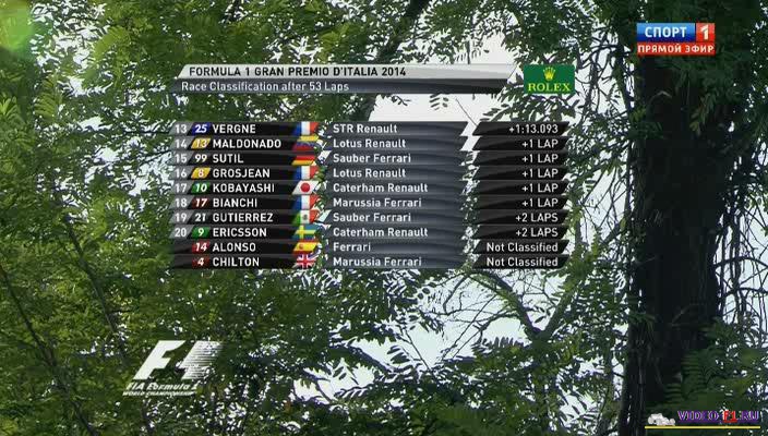Формула-1 гран-при Италии 2014 МонцаФормула-1 - Сезон 2014 - Этап 13 - гран-при Италия ITALY - Monza - FORMULA 1 GRAN PREMIO D'ITALIA 2014 13-й этап чемпионата мира 2014 года. Последняя европейская гонка перед длинной выездной серией. 65-й раз с 1950 года гран-при Италии на аутодроме ди Монца. Задолго до этого Монца принимала гонки, в 1922 году в парке неподалеку от Милана был построен легендарный автодром и с тех пор практически всегда небольшой городок Монца принимает у себя гонки. На этой трассе в 4-х местах пилоты превышают скорость в 300 км/ч. А после главной длинной прямой перед первой шиканой они превышают скорость 350 км/ч. Была заасфальтироована полоса вдоль всей параболики, раньше там была щебенка. На предпоследнем круге у российского гонщика Даниила Квята пропали тормоза и он чудом не врезался в Кими Райкконена и смог удержать свой болид от заноса на траве. Дата гонки: 7 сентября 2014 г Место проведения: Италия, Монца. Название трассы: Автодром ди Монца. Длина круга: 5.793 km Количество кругов: 53 Общая дистанция: 306.720 km Продолжительность видео: 2 часа 11 мин Комментируют гонку: Алексей Попов и Наталья Фабричнова Фото с гонки: Вы смотрите Формула-1 гран-при Италии 2014 Монца
