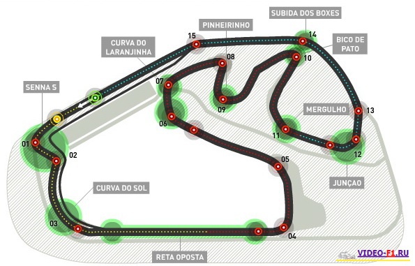 Гран при Бразилия Интерлагос трасса конфигурация, историяКонфигурация трассы гран-при Бразилии Интерлагос - автодром имени Жозе Карлуса Пасетрасса 2008-2009-2010, 2013-2014-2015 гг ![]() Другие рисунки трасс: Страна: Бразилия Город: Сан-Пауло Название трассы: автодром имени Жозе Карлуса Sao Paulo - Autodromo Jose Carlos Pace Конфигурация с 1990 г Количество кругов: 71 Длина круга: 4.309 км Длина гонки: 305.909 км Перепад высот: 43 м Рекорд круга: 1:11.473 (J P Montoya, 2004) Даты гонок: 2-11-2008, 18-10-2009, 7-11-2010, 27-11-2011, 25-11-2012, 24 11 2013, 9 11 2014, 15-11-2015, 13 ноября 2016 г коротко о трассе: много кочек. Параметры трассы 1973-1977 гг: Длина круга: > 7 км Прохождение кругов История Трассы В 1938 году, двумя местными застройщиками в Сан-Паулу, был куплен большой участок земли для жилищного строительства. Но позже они поняла, что часть земля не пригодна для жилья и было принято решение построить автодром. Позже, быстрыми темпами вокруг трассы и вырос целый город с многочисленными жилыми домами. Когда в 1970-х годов, Эмерсон Фиттипальди (Emerson Fittipaldi) получил международный успех, Бразилия захотела на этом автодроме иметь свой гран-при Формулы-1. И в 1973 году на Интерлагосе прошел первый в истории официальный гран-при Бразилии. Трек стал счастливым для местных гонщиков Фиттипальди, Карлос Пейс и Карлос Рейтмэнн (Fittipaldi, Carlos Pace, Carlos Reutemann) так как они добивались успеха на домашней гонке. Карлос Пэйс в своей жизни выиграл всего одну гонку на домашней гонке и после смерти в автокатастрофе, этот автодром был назван в его честь. В 1978 году Формула-1 проводилась в Рио на автодроме Джакарпабуа, но в 1979 году гонки опять вернулись в Интерлагос. Однако с 1981 по 1989 годы Рио опять вернуло себе честь проводить гонки, так как город Сан-Паулу превратился в трущобы и перестал показывать гламурный имидж гонок Формулы-1. Также из-за больших кочек болиды подпрыгивали во время гонки. Но в период расцвета карьеры Айртона Сенны, властями было принято решение о реконструкции города Сан-Паулу и в конце концов он вернул себе право проведения гонок на трассе Интерлагос. После смерти Айртона Сенны у Бразилии больше не было гонщиков чемпионов, но страсть бразильских болельщиков не дает покоя и по сей день. Автодром, который по старинке называют "Старой школой - Old School". Она особо интересна в замедленных повторах на тв картинке, где пилотам приходится работать и часто возникают боковые скольжения всеми 4-мя колесами болида. Движения по трассе происходит против часовой стрелки. До 2009 года на этой трассе завершался чемпионат Формулы, пока в 2010 году это право не отобрал гран-при Абу-Даби. 2014 год положили новый асфальт и заменили заезд на питлейн (добавили S образную змейку и приходится замедляться гонщикам). 2015 сделали новые поребрики. Победители гран-при Бразилии 2008 1 место - Филипе Масса на Феррари, 2 - Фернандо Алонсо (Рено), 3 - Кими Райкконен (Феррари) (Масса упустил чемпионство самому молодому чемпиону Хэмильтону, 1 титул) 2009 1 место - Марк Веббер на Рэд Булл Рено, 2 - Роберт Кубица (БМВ Заубер), 3 - Льюис Хэмильтон (Макларен Мерседес) 2010 1 - Себастьян Феттель на Ред Булл Рено, 2 - Марк Веббер (RBR Renault), 3 - Фернандо Алонсо (Феррари) (команда RBR Renault досрочно взяла в 2010 году на этой трассе свой первый кубок конструкторов) 2011 1 - Марк Веббер на Ред Булл Рено, 2 - Себастьян Феттель (RBR Renault), 3 - Дженсон Баттон (макларен мерседес) 2012 1 - Дженсон Баттон на Макларен Мерседес, 2 - Фернандо Алонсо (Феррари), 3 - 