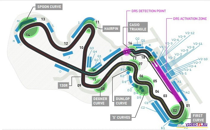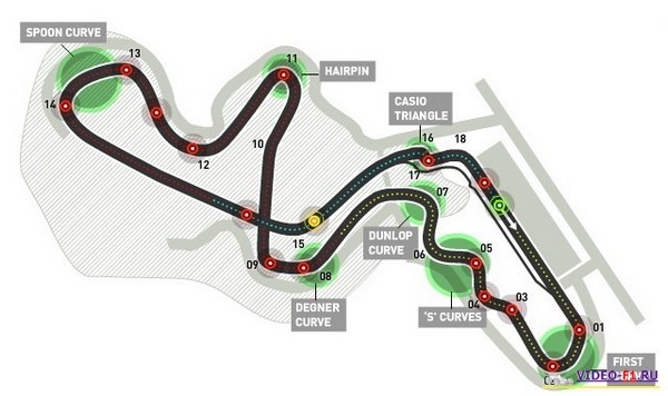 Гран при СузукаКонфигурация трассы Гран при Япония - СузукаКонфигурации 2008-2009-2010-2011-2012-2013-2015 года: ![]() Ранние рисунки трассы: Страна: Япония Название трассы: Сузука Suzuka International Racing Course Количество кругов: 53 Длина круга: 5.807 км Длина гонки: 307.471 км Раньше: (307.573 км - до 2009 года) Рекорд круга: 1:31.540 (К Райкконен, 2005 год) Даты гонок: .. . с 1987 года, 4 окт 2009, 10 окт 2010, 9 окт 2011, 7 окт 2012 г, 13 окт 2013, 5 10 2014, 27 сентября 2015 года коротко о трассе: История Трассы: Автодром находится в префектуре Миа между Осакой (в 150 км) и Нагоей (в 50 км), где расположена трасса Сузука, которая принимает 30-й гран при Японии (в 2014 году) и 26-й именно на Сузука, а 4 раза гонки проходили на Фудзи (в 1977-78 и в 2007-08). В 1962 году голландский архитектор Джон Хугенхольц (John Hugenholz) построил эту трассу для Хонды, изначально она даже не должна была быть гоночной, а должна быть тестовая трасса и разные части трассы по замыслам Хонды должны были подвергать нагрузкам разные части автомобиля. Позже трасса была доведена архитектором Германом Тилке (Hermann Tilke). Но в итоге гонки начали проводить сначала местные, затем чуть-чуть перестроили трассу и с 1987 года гран при Японии сюда вернулся, потому что в конце 1970х годов дважды проходил на Фудзи. В 1987 году трасса принимала различные спортивные авто состязания и гонки F2 и и в конце концов, после долгих споров, на трассе прошел первый Гран-при Японии, благодаря влиянию Хонды и у Формулы-1 появился новый "японский дом". На трассе Сузука случались многие решающие битвы, так как гран-при обычно проводится в конце сезона, одна из самых знаменитых и позорных встреч - это битва между Аленом Прост и Айртоном Сенны. Огромный тематический парк был также построен около трассы, включая известное колесо обозрения, которое возвышается над горизонтом Судзуки и является символом трассы. Сузука имеет несколько очень интересных и сложных поворотов. Среди любимых у пилотов - это быстро-скоростной поворот 130R и известный Spoon Curve. Вдобавок ко всему трасса сверху выглядит как цифра 8, что делает её уникальной в календаре Формулы 1 (пересекает саму себя). В 2014 году в 7 повороте гонщик Жуль Бьянки врезался в трактор и в последствии скончался. Победители гран-при Японии на трассе в Сузука: 1988 1 - Айртон Сенна на Макларен, 2 - Алан Прост (Макларен), 3 - Тьиерри Боутсен (Бенеттон) 1989 1 - Алессандро Наннини на Бенеттон, 2 - Риккардо Патрезе (Вильямс), 3 - Тьиерри Боутсен (Вильямс) 1990 1 - Нельсон Пике на Бенеттон, 2 - Роберто Морено (Бенеттон), 3 - Агури Сузуки (Ларруззе) 1991 1 - Найджел Мэнселл на Вильямс, 2 - Алан Прост (Феррари), 3 - Риккардо Патрезе (Вильямс) 1992 1 - Риккардо Патрезе на Вильямс, 2 - Герхард Бергер (Макларен), 3 - Мартин Брандл (Бенеттон) 1993 1 - Айртон Сенна на Макларен, 2 - Алан Прост (Вильямс), 3 - Мика Хаккинен (Макларен) 1994 1 - Дэймон Хилл на Вильямс, 2 - Михаэль Шумахер (Бенеттон), 3 - Жан Алези (Феррари) 1995 1 - Михаэль Шумахер на Бенеттон, 2 - Мика Хаккинен (Макларен), 3 - Джонни Херберт (Бенеттон) 1996 1 - Дэймон Хилл на Вильямс, 2 - Михаэль Шумахер (Феррари), 3 - Мика Хаккинен (Макларен) 1997 1 - Михаэль Шумахер на Феррари, 2 - Хейц-Харалд Фрэнтцзэн (Заубер), 3 - Эдди Ирвайн (Феррари) 1998 1 - Мика Хаккинен на Макларен, 2 - Эдди Ирвайн (Феррари), 3 - Дэвид Кулхард (Макларен) 1999 1 - Мика Хаккинен на Макларен, 2 - Михаэль Шумахер (Феррари), 3 - Эдди Ирвайн (Феррари) 2000 1 - Михаэль Шумахер на Феррари, 2 - Мика Хаккинен (Макларен), 3 - Дэвид Кулхард (Макларен) 2001 1 - Михаэль Шумах