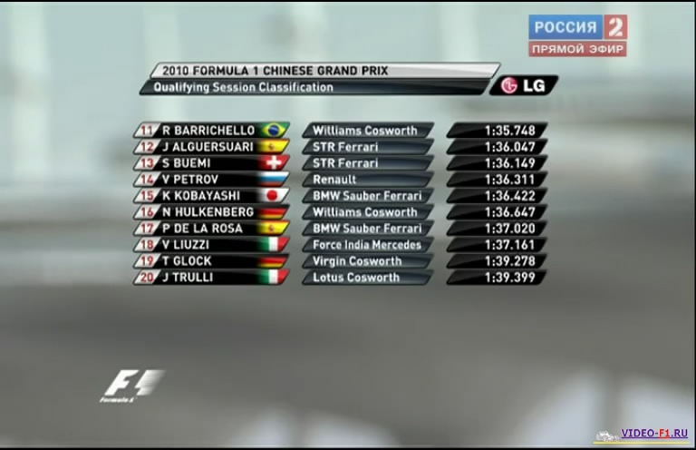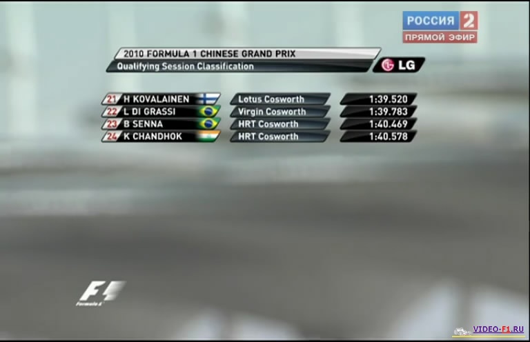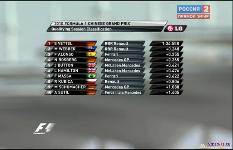 Формула 1 Сезон 2010 Гран-при Китай Квалификация [mp4, 290 Mb]