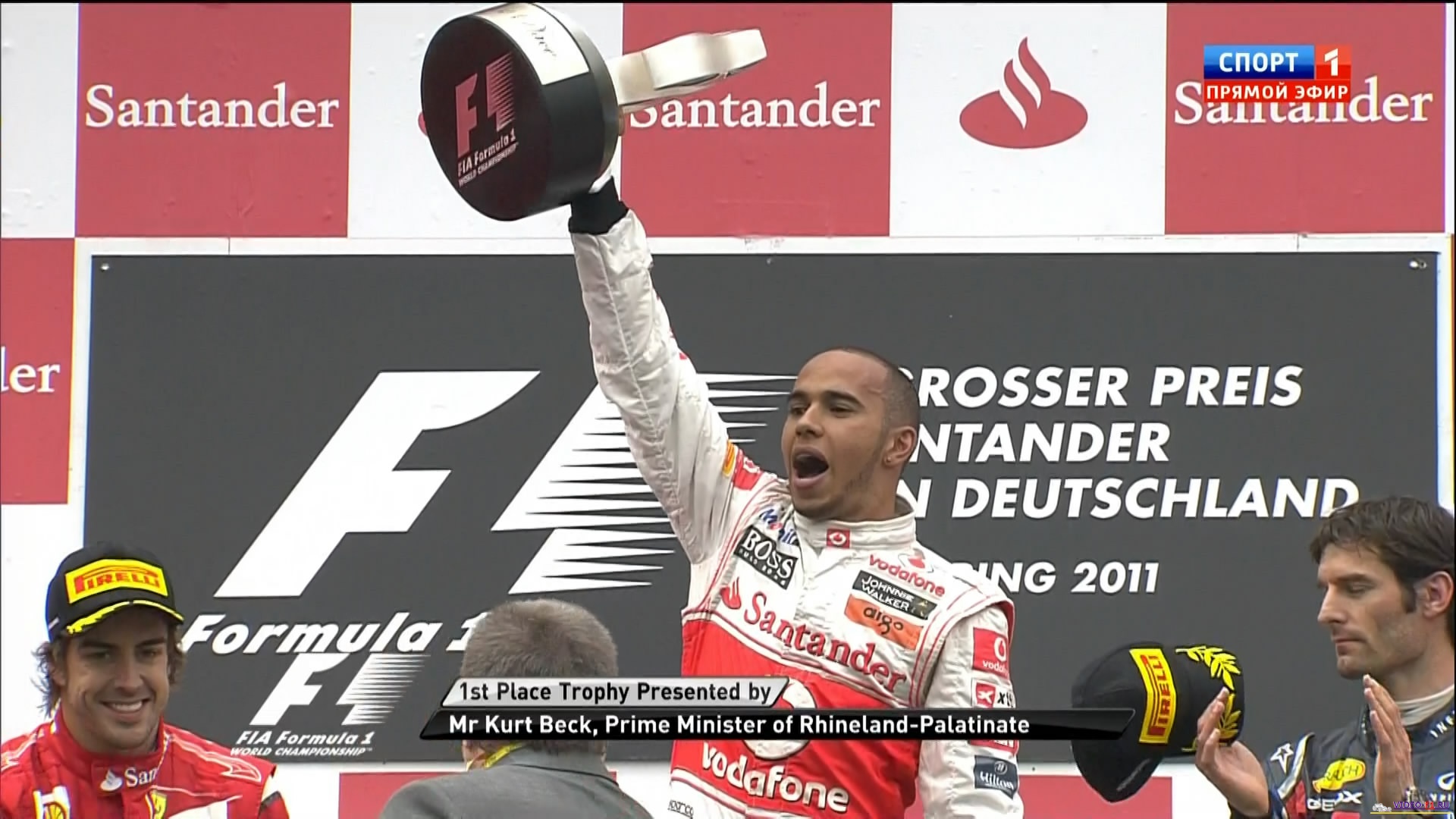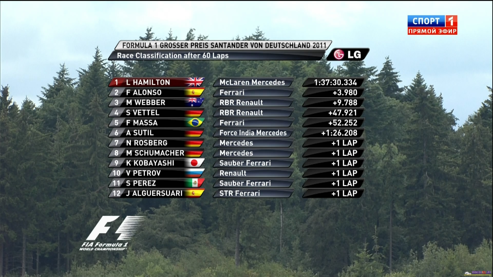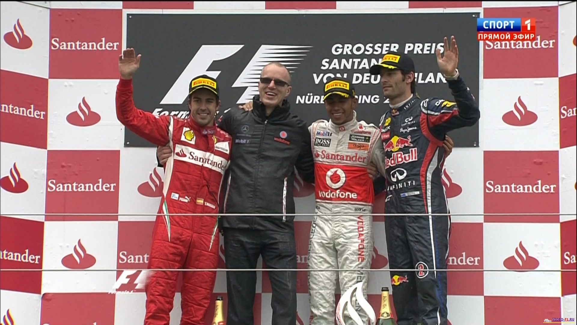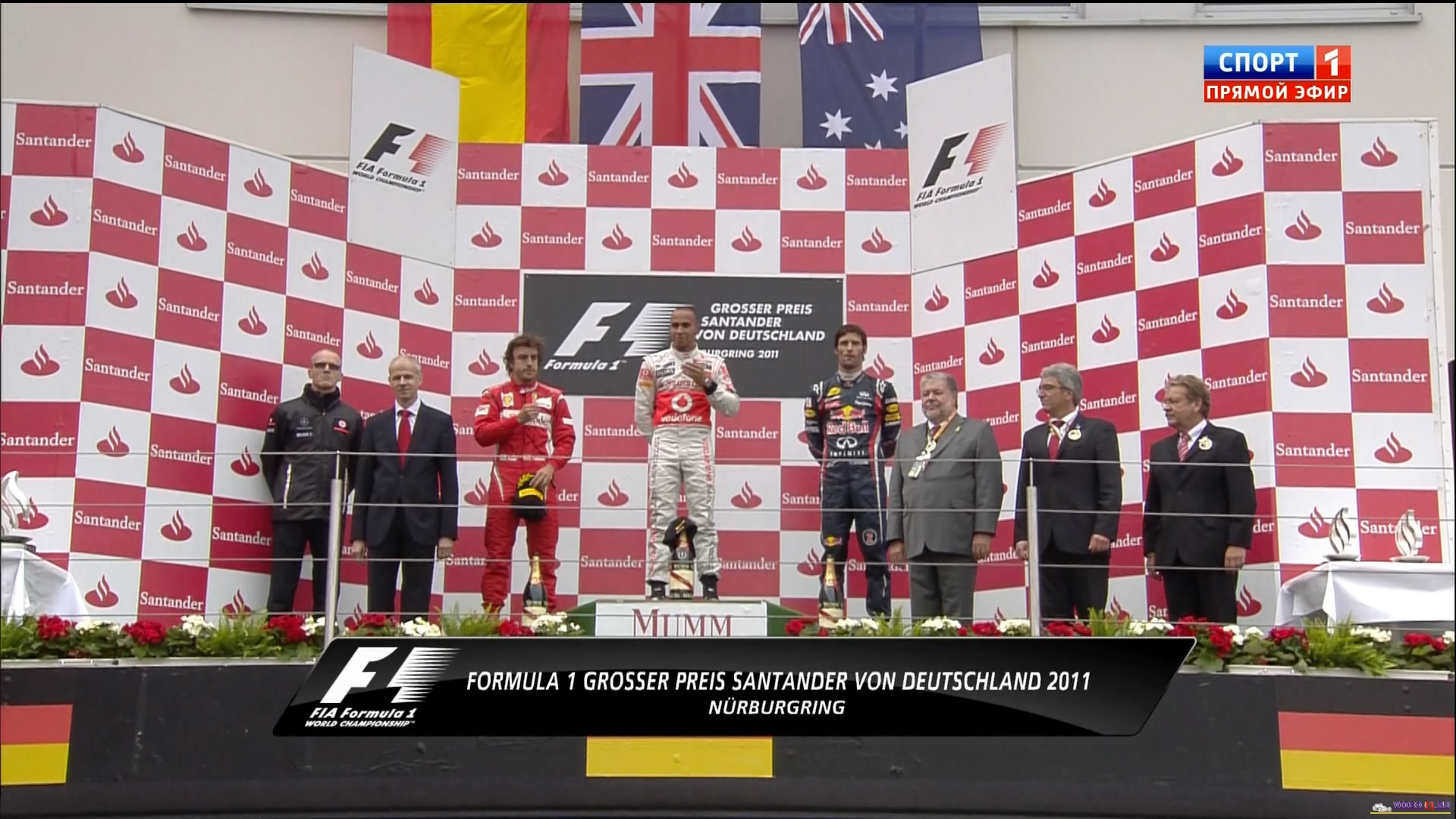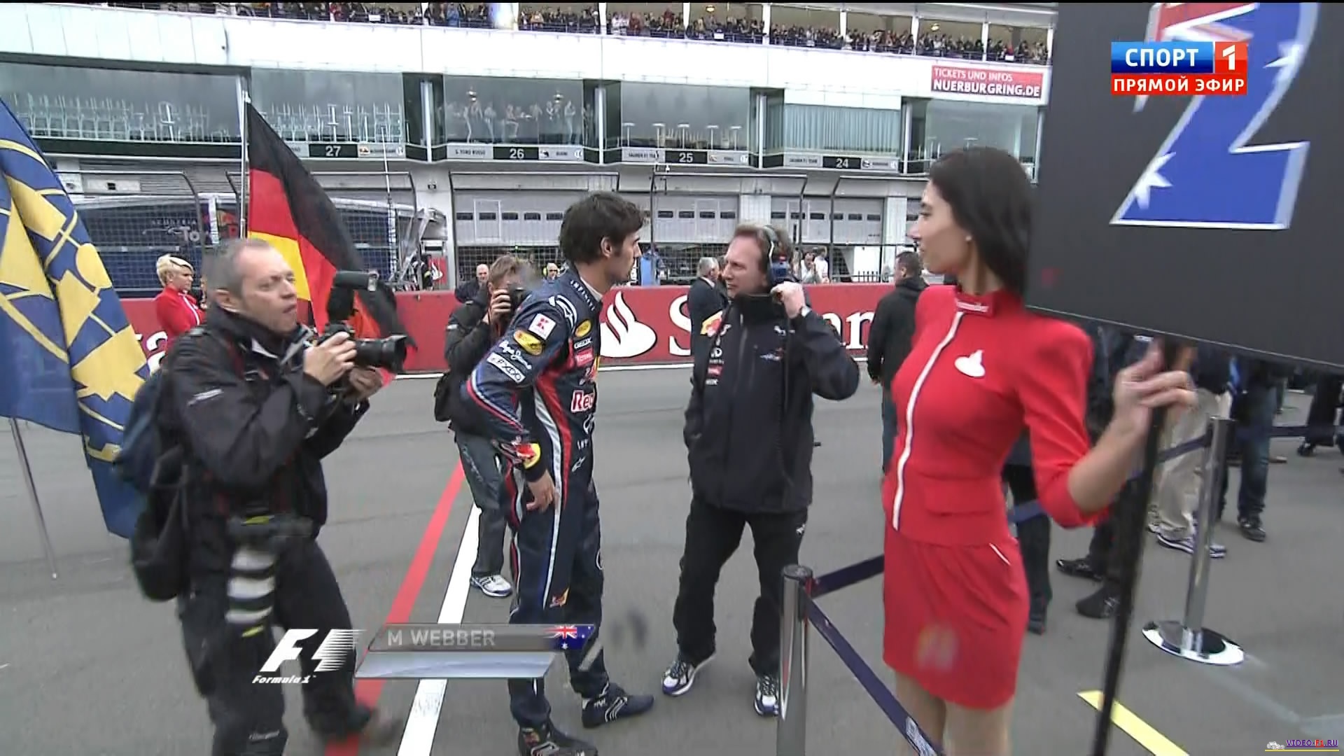 Формула 1 - 2011 - Этап 10 - гран-при Германии Нюргбургринг - ГонкаФормула 1 - Гран-при Германия - ГонкаСезон 2011 года - Этап 10 (Нюрбургринг, 24 июля 2011 года) FORMULA 1 GROSSER PREIS SANTANDER VON DEUTSCHLAND 2011 Round 10 - Nurburgring - Race Гран-при Германия (Нюрбургринг) - Гонка - скачать видео гонки Гонка в обычном качестве гран-при Германии в городе Нюрбургринг добавлена для скачивания 25 июля 2011 года Температура воздуха - 13 C Температура трассы - 15 C Влажность - 75 % Скорость ветра - 4.3 м/с Посмотреть бесплатно 3 минутный ролик самых интересных моментах в течении гонки гран-при Германии 2011 годаКанал: Спорт 1 Продолжительность: 2 часа 22 минуты Комментарий: Русский (Алексей Попов) Размер файла: 1.9 Gb Формат: AVI Видео: XviD MPEG-4; ~1800kbps; 720x400 0.25 bit/pixel; 25 fps Аудио: 48 kHz, MPEG Layer 3, 2 ch, 128 kbps CBR (гонку в высоком HD качестве (размером около 10 Gb) можно скачать - Здесь) (квалификацию можно скачать - Здесь) ______ ___ __ _ _ Скачать видео обычного качества гонки Формулы-1 - гонку гран-при Германия (Нюрбургринг) 2011 года (Download race gran-prix Germany) Вы смотрите Формула 1 - 2011 - Этап 10 - гран-при Германии Нюргбургринг - Гонка