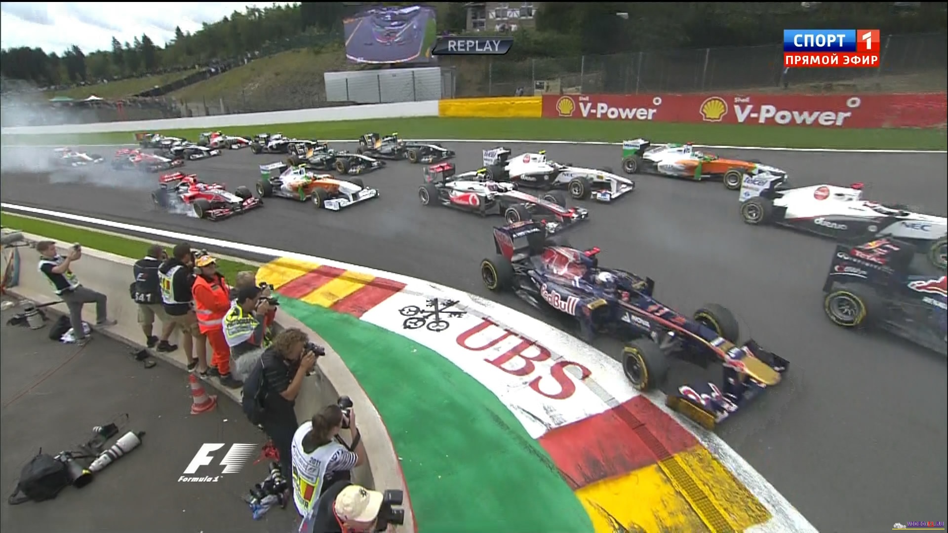 фото Красная вода, Формула-1, Гран при Бельгия 2011 годФормула-1, Гран при Бельгия 2011 годДобро пожаловать на трассу, Формула-1, Гран при Бельгия 2011 годна старте гонки веббер проигрывает много мест, Формула-1, Гран при Бельгия 2011 годСтолпотворение в первом повороте после старта, Формула-1, Гран при Бельгия 2011 годМного столкновений в первом повороте, Формула-1, Гран при Бельгия 2011 годНекоторые в первом повороте сходят, Формула-1, Гран при Бельгия 2011 годХэмильтон теряет свой болид после контакта с Кобояши, Формула-1, Гран при Бельгия 2011 годСильный удар Хэмильтона об рельс безопасности и снос рекламного щита, Формула-1, Гран при Бельгия 2011 годХэмильтон на секунды теряет сознание, Формула-1, Гран при Бельгия 2011 год
