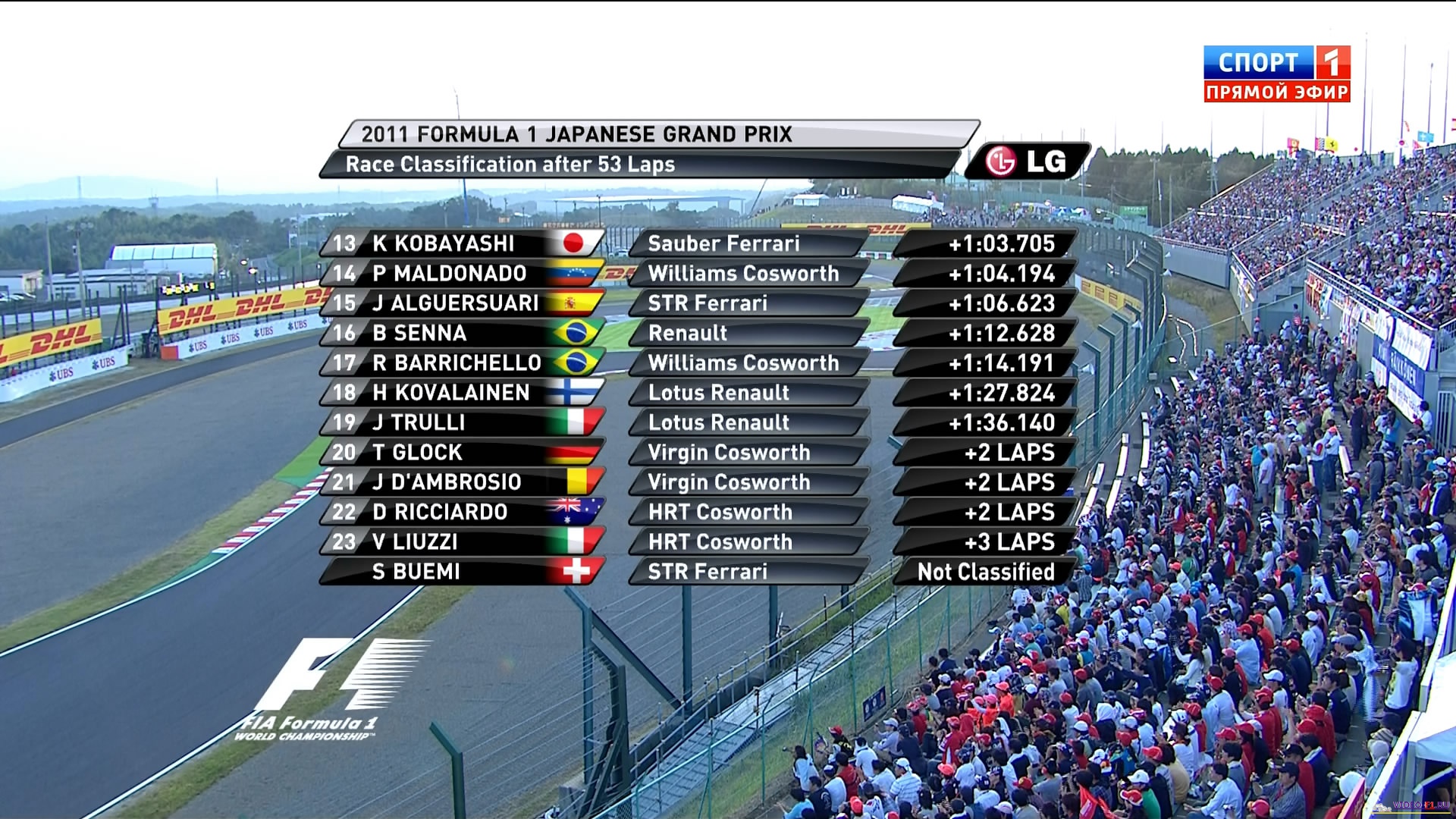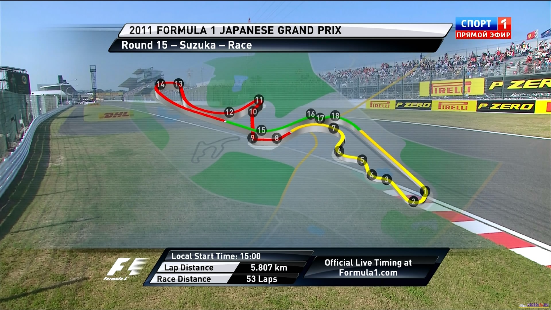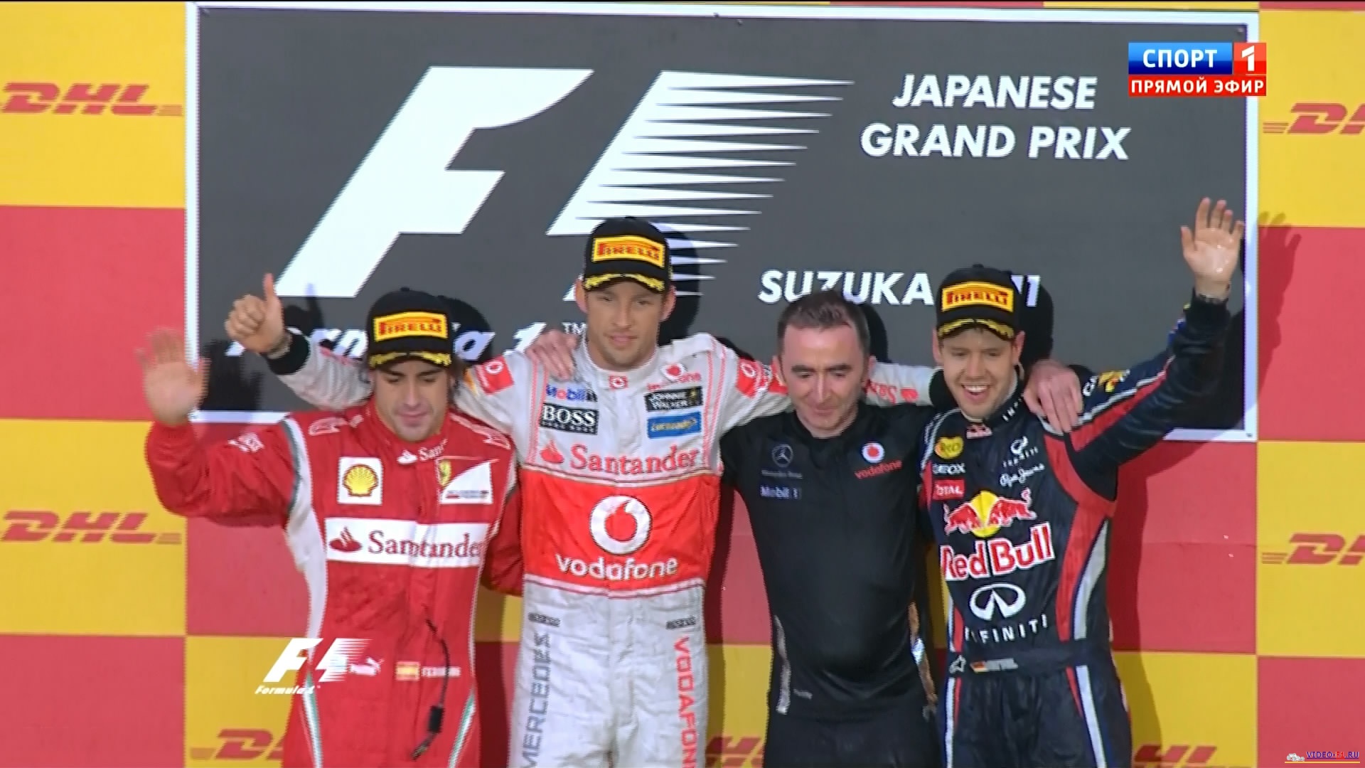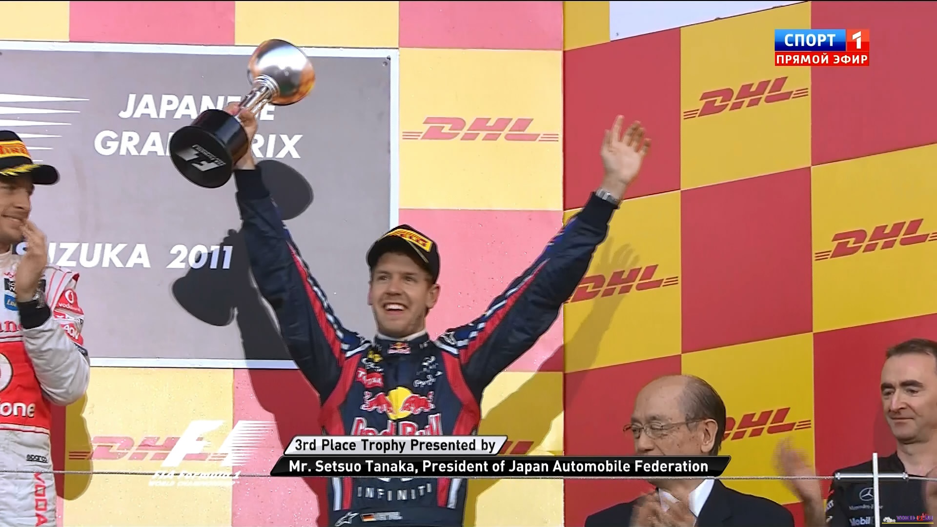 Формула 1 - 2011 - Этап 15 - гран-при Япония Сузука - ГонкаФормула 1 - Гран-при Япония - Гонка - СкачатьСезон 2011 года - Этап 15 (Сузука, 9 октября 2011 года) 2011 FORMULA 1 JAPANESE GRAND PRIX Round 15 - Japan - Suzuka - Race Video Гран-при Япония (Сузука) - Гонка - скачать видео гонки Гонка гран-при Японии на трассе в Сузука добавлена для скачивания 9 октября 2011 года Судзука, Япония - Элитное состязание в классе «Формула-1» с 1976 года имеет свой этап в Стране восходящего солнца. В последние 20 лет этап в основном проводится на автодроме Судзука. Трасса рассчитана на высокоскоростные маневры, именно поэтому большая ее часть - прямая. Больше всего в Японии побеждал немец Михаэль Шумахер (6 раз), в прошлом году первенствовал его соотечественник Себастьян Феттель. Температура воздуха - 24 C Температура трассы - 31 C Влажность - 31% Скорость ветра - 2.6 m/s Посмотреть бесплатно 3 минутный ролик самых интересных моментах в течении гонки гран-при Японии 2011 годаКанал: Спорт 1 Продолжительность: 2 часа 20 минут Комментарий: Русский (Алексей Попов) Размер файла: 1.8 Gb Формат: AVI Видео: 720х400 (16:9) , 25.000 fps, 1700 kbps Аудио: 48 kHz, 2 ch, 128 kbps MP3 (гонку в высоком HD качестве (размером около 10 Gb) можно скачать - Здесь) (квалификацию можно скачать - Здесь) ______ ___ __ _ _ Скачать видео гонки Формулы-1 - гонку гран-при Японии (Сузука) 2011 года в обычном качестве SATRip (Без рекламы, одним файлом)(Download gran-prix Japan (Suzuka) race) Ссылка на видео -> СКАЧАТЬ Вы смотрите Формула 1 - 2011 - Этап 15 - гран-при Япония Сузука - Гонка
