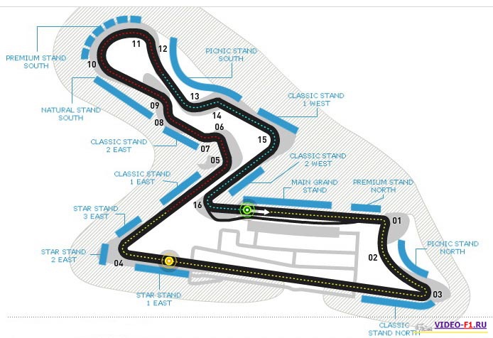 Гран при ИндияКонфигурация трассы гран-при Индия, в городе Нью-Дели- рекорды, конфигурация трассы (Buddh International circuit diagram)Конфигурация 2011-2013 годов Конфигурация трассы гран-при Индия Нью Дели: Даты гонок: 30 окт 2011 (первая гонка), 28 окт 2012, 27 октября 2013 года Количество кругов: 60 Длина круга: 5.125 км Длина гонки: 307.249 km Рекорд круга: 1:27.249 - S Vettel (2011) История Трассы: Гонки Формулы 1 в 2011 году продолжают двигаться на восток и встречают первый индийский Гран-при. Новая схема была построена к югу от города в пригороде Нойда. Дорожка, по проекту известного архитектора Германа Тильке, тянется на 5,137-км и, как ожидается, вместит до 150000 зрителей. Два значительных прямых и интересное сочетание углов должна гарантировать полный трек проблем для водителей и инженеров. Организаторы строительства консультировались с несколькими командами Формулы -1 до начала строительства. Дизайн трека тестировался на различных тренажерах и в результате было внесено несколько поправок, с тем чтобы повысить качество и количество обгонов для пилотов - и радость для фанатов. Четыре миллиона кубических тонн земли был перенесено, чтобы дать сделать множество волнистостей, и трасса поднимается 14 метров между витками первого и третьего поворотов. Земляные работы для схемы были закончены раньше 2010 сезона муссонов в Индии и все на пути к трассе будет завершен задолго до своего дебюта в октябре. Победители гран-при Индии - автодром Будды: 2011 год: 1 место - Себастьян Феттель на РБР Рено, 2 место - Джейсон Баттон (Макларен Мерседес), 3 место - Фернандо Алонсо (Феррари) 2012 год: 1 место - Себастьян Феттель на РБР Рено, 2 место - Фернандо Алонсо (Феррари), 3 место - Марк Веббер (Ред Булл) 2013 год: 1 место - Официальные наименования гонок на английском языке: 2011 FORMULA 1 AIRTEL GRAND PRIX OF INDIA 2012 FORMULA 1 AIRTEL INDIAN GRAND PRIX 2013 FORMULA 1 AIRTEL INDIAN GRAND PRIX Адрес трассы гран-при Индии: Buddh International Circuit Sector 25 YEIDA Dankaur Greater Noida U.P. India Вы смотрите Гран при Индия
