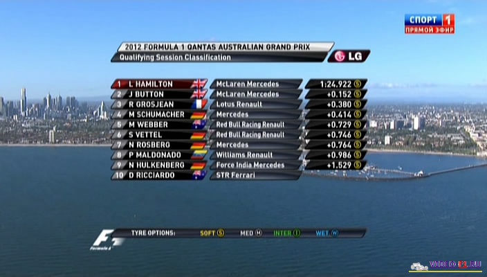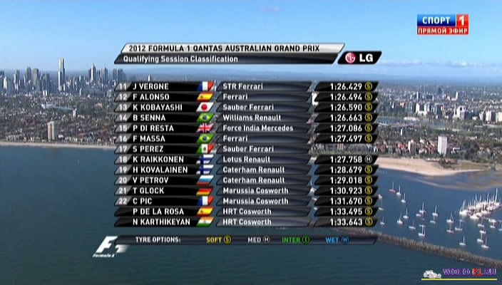 Формула-1 - 2012 - Этап 1 - гран-при Австралия - КвалификацияФормула 1 - Гран-при Австралия - КВАЛИФИКАЦИЯ - Скачать Сезон 2012 года - Этап 1 (Мельбурн, Альберт Парк, 17 марта 2012 года) 2012 FORMULA 1 QANTAS AUSTRALIAN GRAND PRIX Round 1 - Australian - Melbourne (Albert Park) - Qualifying Гран-при Австралии (Мельбурн) - Квалификация - скачать видео квала Альбертпарк в Мельбурне, первый гран при сезона 2012 года вокруг озера по Алее-парка. На трассе две зоны ДРС, но в квалификации это не так важно, потому что пилоты могут открывать свое крыло, а некоторые даже и активизировать дополнительный воздуховод (Шумахер и Росберг на Мерседесе) в любом месте. Выход из первой части скоростного кларка, после кварка Квейти (10 и 11 поворота) - скоростная дуга, одна из самых интересных пилотажных мест трассы. Канал: Спорт 1 Продолжительность: 1 час 19 мин Комментарий: Русский (Михаил Цибулин и Алексей Попов) Размер файла: 1.2 Gb Формат: AVI Видео: 704x400, 25fps, XviD, ~1800 kbps Аудио: MP3, 48 kHz, 2 ch, 128.00 kbps ______ ___ __ _ _ Формула-1 гран-при Австралии Квалификация - Скачать видео 2012 года в обычном SATRip качестве (Без рекламы, одним файлом)(Download gran-prix Australian qual) [sms_1] Ссылка на видео -> СКАЧАТЬ После открытия нажать DOWNLOAD и выбрать путь сохранения файла. [/sms_1] Вы смотрите Формула-1 - 2012 - Этап 1 - гран-при Австралия - Квалификация