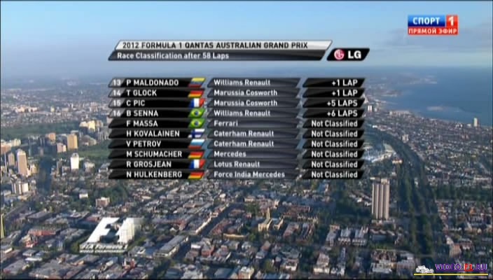 Формула 1 - 2012 - Этап 2 - гран-при Австралия - ГонкаФормула 1 - Гран-при Австралия - ГОНКА - Скачать Сезон 2012 года - Этап 01 (Мельбурн, Альберт Парк, 18 марта 2012 года) FORMULA 1 AVSTRALIAN 2012 Round 01 - Australian - Melbourne - Race Гран-при Австралии (Мельбурн) - ГОНКА - скачать видео Гонки Альберт Парк, арена первого гран при нового сезона 2012 года! Гонка которая обещает быть одной из самых интересных за последние годы. Невероятная плотность результатов во вчерашней квалификации одно из этих доказательств. Пролет титульного спонсора Боинга 747 компании Квантас на очень низкой высоте над небоскребами. Льюис Хэмильтон второй раз в своей карьере взял поул позишин в Австралии. Его напарник на второй позиции. А Вообще Макларен не занимал первый ряд стартового поля аж с Венгрии 2008 года. Посмотреть бесплатно 3 минутный ролик самых интересных моментах в течении гонки гран-при Австралии 2012 сезонаКанал: Спорт 1 Продолжительность: 2 час 06 мин Комментарий: Русский (Алексей Попов) Размер файла: 1.9 Gb Формат: AVI Видео: 704x400, 25fps, XviD, ~1800 kbps Аудио: MP3, 48 kHz, 2 ch, 128.00 kbps ______ ___ __ _ _ Формула-1 - гонка гран-при Австралии Скачать видео, 2012 год, в обычном SATRip качестве (Без рекламы, одним файлом)(Download gran-prix Australian race) [sms_1] Ссылка на видео -> После открытия нажать DOWNLOAD и выбрать путь сохранения файла. [/sms_1] Вы смотрите Формула 1 - 2012 - Этап 2 - гран-при Австралия - Гонка