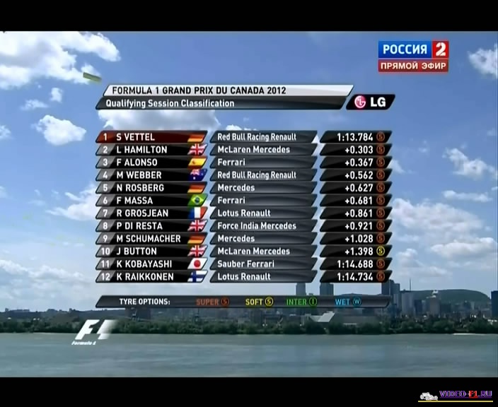 Формула-1 - 2012 - Этап 7 - гран-при Канада - КвалификацияФормула 1 - Гран-при Канада - КВАЛИФИКАЦИЯ - Скачать Сезон 2012 года - Этап 7 (Монреаль, трасса имени Жиля Вильнева, 9 июня 2012 года) FORMULA 1 GRAND PRIX DE MONACO 2012 Round 7 - Canada - Montreal (Circuit Gilles-Villeneuve) - Qualifying Гран-при Канады (Монреаль) - Квалификация - скачать видео квала В 30 раз на этом искусственном острове Нотрдам в Монреале вокруг реки Сонлоран пройдет эта гонка. Здесь целая куча островов, знаменитый остров Святая Елена с биосферой. Легендарный канадский гонщик Жиль Вильнев выиграл самую первую гонку которая проходила на этой трассе. Самая длинная километровая прямая на этой трассе идет от шпильки казино и до шиканы перед стартовой прямой, перед стеной чемпионов. Эта стена уже вчера нашла свою первую жертву - Бруно Сенна, хоть он и племянник чемпиона Айртон Сенны. Название всех поворотов на трассе гран при Канады: Шпилька Казино, поворот Аэртон Сенна, шикана Саваран в честь Святого Лаврентия.. Канал: Спорт 1 Продолжительность: 1 час 03 мин Комментарий: Русский (Алексей Попов) Размер файла: 0.9 Gb Формат: AVI Видео: XviD, 704x448, 25.0fps, 1800kbps Аудио: MP3, 2ch, stereo, 128kbps, 48000Hz ______ ___ __ _ _ Формула-1 гран-при Канады Квалификация - Скачать видео 2012 года в обычном SATRip качестве (Без рекламы, одним файлом)(Download gran-prix Canada 2012 qual) [sms_1] Ссылка на видео -> [/sms_1] Вы смотрите Формула-1 - 2012 - Этап 7 - гран-при Канада - Квалификация