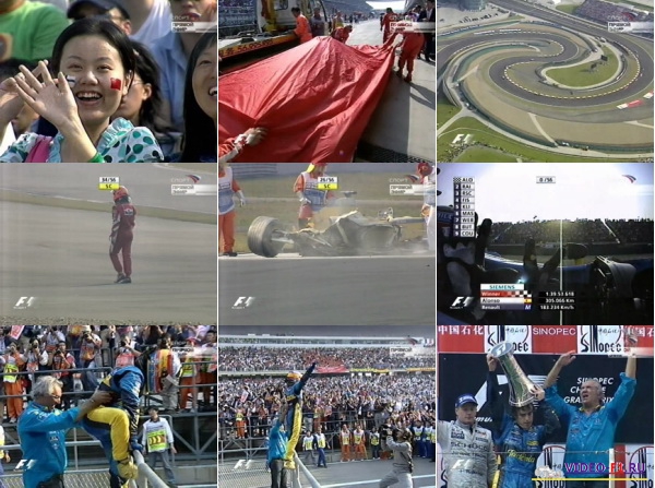 Формула-1.Сезон 2005.Гран-при КитайПоследний чемпионат мира 2005 года и всего второй гран-при Китая. Невероятный случай произошел перед прогревочным кругом. В тот момент когда машины только выстраиваются для него, именно с этого момента и начинается обычно трансляции. Так вот в момент когда машины выстраивались Михаель Шумахер умудрился разбить свой феррари довольно сильно. Дальше в гонке Шумахер вообще непонятно как умудрился потерять контроль над машиной, когда весь пельетон ехал за пейс-каром. Продолжительность 1час 53мин Комментирует Алексей Попов Результаты гонки Ф1 гран при Китай 2005: Pos No Driver Team Time Laps Grid Pts 1 5 Fernando Alonso Renault 01:39:53.618 56 1 10 2 9 Kimi Räikkönen McLaren 01:39:57.618 56 3 8 3 17 Ralf Schumacher Toyota 01:40:18.918 56 9 6 4 6 Giancarlo Fisichella Renault 01:40:19.718 56 2 5 5 15 Christian Klien Red Bull 01:40:25.418 56 14 4 6 12 Felipe Massa Sauber 01:40:30.018 56 11 3 7 7 Mark Webber Williams 01:40:30.418 56 10 2 8 3 Jenson Button BAR 01:40:34.818 56 4 1 9 14 David Coulthard Red Bull 01:40:37.818 56 7 0 10 11 Jacques Villeneuve Sauber 01:40:53.518 56 16 0 11 18 Tiago Monteiro Jordan 01:41:18.218 56 19 0 12 2 Rubens Barrichello Ferrari 01:41:26.418 56 8 0 13 8 Antônio Pizzonia Williams Tyre puncture 55 13 0 14 20 Robert Doornbos Minardi Out of fuel 55 20 0 15 16 Jarno Trulli Toyota +1 lap 55 12 0 16 21 Christijan Albers Minardi Wheel nut 50 18 0 Ret 4 Takuma Sato BAR Gearbox 34 17 0 Ret 19 Narain Karthikeyan Jordan Accident 28 15 0 Ret 10 Juan Pablo Montoya McLaren Engine 24 5 0 Ret 1 Michael Schumacher Ferrari Spin 20 6 0 Вы смотрите Формула-1.Сезон 2005.Гран-при Китай