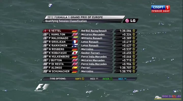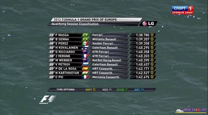 Формула-1 - 2012 - Этап 8 - гран-при Европа - КвалификацияФормула 1 - Гран-при Европа - КВАЛИФИКАЦИЯ - Скачать Сезон 2012 года - Этап 8 (Валенсия, 23 июня 2012 года) 2012 FORMULA 1 GRAND PRIX OF EUROPE Round 8 - Europe - Valencia (Valencia Street Circuit) - Qualifying Гран-при Европы (Валенсия) - Квалификация - скачать видео квала Канал: Спорт 1 Продолжительность: 1 час 14 мин Комментарий: Русский (Алексей Попов и Наталья Фабричнова) Размер файла: 1 Gb Формат: AVI Видео: XviD MPEG-4; ~1800kbps; 720x400 0.25 bit/pixel; 25 fps Аудио: 48 kHz, MPEG Layer 3, 2 ch, 128 kbps CBR ______ ___ __ _ _ Формула-1 гран-при Европы Квалификация - Скачать видео 2012 года в обычном SATRip качестве (Без рекламы, одним файлом)(Download gran-prix Europe 2012 qual) [sms_1] Ссылка на видео -> [/sms_1] Вы смотрите Формула-1 - 2012 - Этап 8 - гран-при Европа - Квалификация