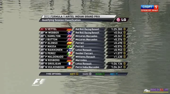 Формула-1 - 2012 - Этап 17 - гран-при Индия - КвалификацияФормула 1 - Гран-при Индия - КВАЛИФИКАЦИЯ - Скачать Сезон 2012 года - Этап 17 (Нью Дели, 27 октября 2012 года) 2012 FORMULA 1 AIRTEL INDIAN GRAND PRIX Round 17 - India - New Delhi (Buddh International Circuit) - Qualifying Гран-при Индия (Будда трек) - Квалификация - скачать видео квала Канал: Россия 2 Продолжительность: 1 час 18 мин Комментарий: Русский (Алексей Попов, Наталья Фабричнова) Размер файла: 1Gb Формат: aVI Видео: 720x400 (1.80:1), 25 fps, XviD build 50 ~1707 kbps Аудио: 48 kHz, MPEG Layer 3, 2 ch, ~128.00 kbps ______ ___ __ _ _ Формула 1 2012 Индия Квалификация скачать видео в обычном SATRip качестве (Без рекламы, одним файлом)(Download gran-prix Indian 2012 qual) Вы смотрите Формула-1 - 2012 - Этап 17 - гран-при Индия - Квалификация