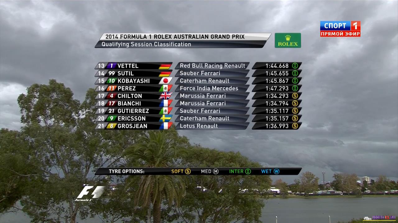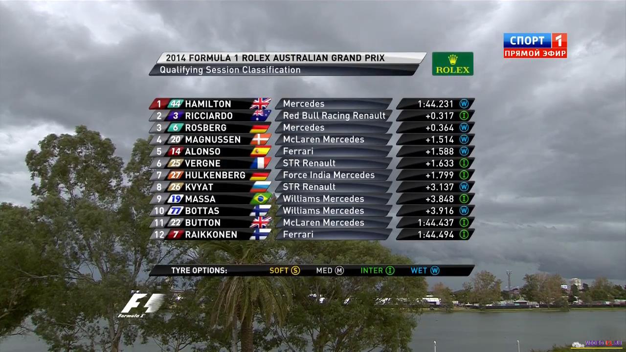 Формула 1 2014 гран-при Австралия - КвалификацияФормула-1 - Сезон 2014 - Этап 1 - гран-при Австралия - Квалификация AUSTRALIA, Melbourne, Albert Park - 2014 FORMULA 1 ROLEX AUSTRALIAN GRAND PRIX Новый сезон Формулы-1. За последние много лет Австралия лишь пару раз не начинала сезон и Бахрейну доставалось это право. На квале ветер очень сильный - 17.5 м/с. Боковой на стартовой прямой. И уже в конце первого сегмента пошел дождь. Новые правила квалификации - 1 сегмент укоротили на 2 минуты с 20 до 18 мин, второй оставили также 15 минут и третий на две минуты увеличили, чтобы дать пилотом проехать полноценные две попытки. В гонке пилоты будут стартовать на той резине, который использовали во втором сегменте квалификации, чтобы пилоты не отсиживались в третьем сегменте. Зато в третьем сегменте дали дополнительный мягкий комплект. На одной коробке болид должен пройти 6 гран-при минимум, в отличии от 5-ти в прошлом сезоне. Новые турбо-двигатели, 6 цилиндров, вместо 8 в прошлых сезонах. Количество оборотов снижено с 18000 до 15 тысяч. за гонку можно использовать только 100 кг топлива. Дата квалификации: 15 марта 2014 г Место проведения: Австралия, Мельбурн. Название трассы: Альберт Парк. Длина круга: 5.303 км Общая дистанция: 307.574 км Продолжительность онлайн видео: Комментирует квалификацию: Алексей Попов и Наталья Фабричнова Доступность видеопотока: смотреть в онлайн. Фото с квала: Вы смотрите Формула 1 2014 гран-при Австралия - Квалификация