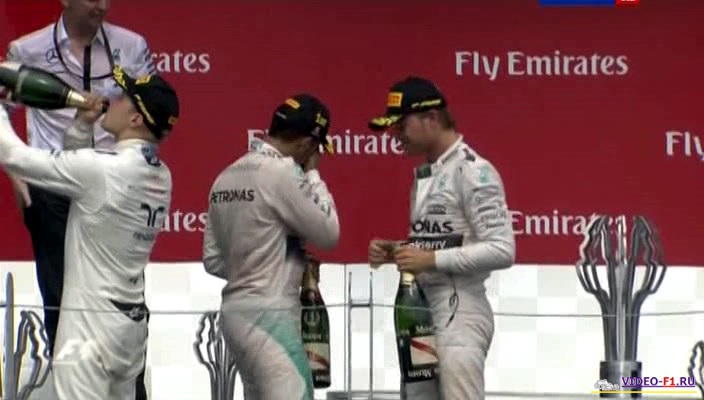 1 Lewis Hamilton GBR Mercedes 1:31:53.145 25 2 Nico Rosberg GER Mercedes +2.285s 18 3 Valtteri Bottas FIN Williams +40.666s 15 4 Kimi Räikkönen FIN Ferrari +45.625s 12 5 Sebastian Vettel GER Ferrari +49.903s 10 6 Felipe Massa BRA Williams +56.381s 8 7 Pastor Maldonado VEN Lotus +66.664s 6 8 Nico Hulkenberg GER Force India +1 lap 4 9 Daniil Kvyat RUS Red Bull +1 lap 2 10 Romain Grosjean FRA Lotus +1 lap 1 11 Sergio Perez MEX Force India +1 lap 0 12 Carlos Sainz ESP Toro Rosso +1 lap 0 13 Daniel Ricciardo AUS Red Bull +1 lap 0 14 Marcus Ericsson SWE Sauber +1 lap 0 15 Max Verstappen NED Toro Rosso +1 lap 0 16 Felipe Nasr BRA Sauber +2 laps 0 17 Will Stevens GBR Marussia +4 laps 0 RT Roberto Merhi ESP Marussia DNF 0 RT Jenson Button GBR McLaren DNF 0 RT Fernando Alonso ESP McLaren DNF 0
