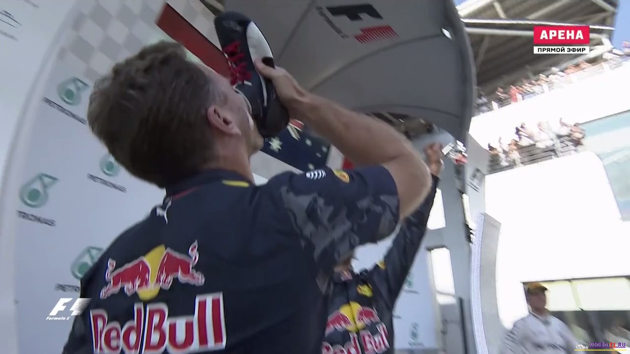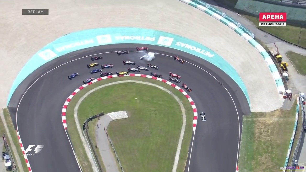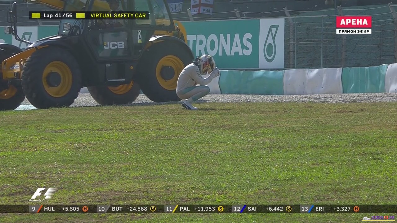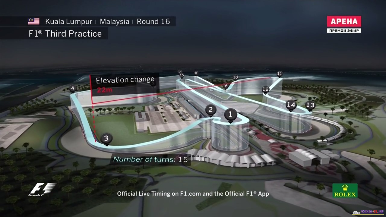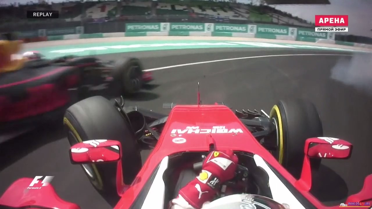 Формула 1 2016 Гран-при МалайзияФормула 1 Этап 16 - Гран-При СингапурГород и название трассы: Малайзия Сепанг (о трассе) Дата ночной гонки: 2 октября 2016 г Длина круга: 5.543 км Кол-во кругов: 56 Общая дистанция 310.408 км Комментатор на матч тв: Алексей Попов (свободные заезды комментирует Владимир Башмаков) Что интересного было на гран-при Формулы 1 на трассе в Сепанг, Обзор гонки В этом году трасса получила новый асфальт, длина круга осталась такой же, но наклон немного изменился, чтобы во время дождя вода быстрее покидала дорожное полотно. На первый свободных заездов загорелась возле боксов желтый болид Рено с Кевином Магнуссеном, который очень быстро успел выпрыгнуть из болида. Машину очень долго тушили, топливо все время вытекало через маленькое отверстие сверху. В квалификации у Романа Грожана оторвалось зеркало бокового вида, болталось, оторвалось и чуть не попало ему в лицо в шлем. В начале гонке на первом повороте Феттель врезался в Росберг и сломал рычаги переднего колеса, Росберга развернуло и ему пришлось прорываться всю гонку через весь пелетон. У Хэмильтона за несколько кругов до финиша загорелся мотор. Росбергу добавили штраф 10 секунд ко времени гонки но он сумел оторваться от Райкконена и сохранить третье место. Даниил Квят второй раз совершает ошибку в сезоне и врезается впереди идущую машину. Макс Ферстаппен обогнал Кими Райкконена во время виртуального сэйф кара, но ему никакого наказания не последовало. В болиде Хаас у Эстебана Гутиераза отлетело колесо во время движения, механики забыли его прикрутить во время пит-стопа. На подиуме австралиец Дэн Риккьярдо по традиции выпил шампанского из своего боевого ботинка, а также заставил выпить из своей же обуви напарника Ферстаппена и Нико Росберга. Интервью брал Марк Веббер который выбросил этот ботинок в толпу, чтобы опять из него не пить. Формула-1 - Результаты гран-при Малайзии 2016 Фото с уикенда Ф1 в Малайзии Категории Формула 1 Сезон 2016 / Гран-При Малайзия