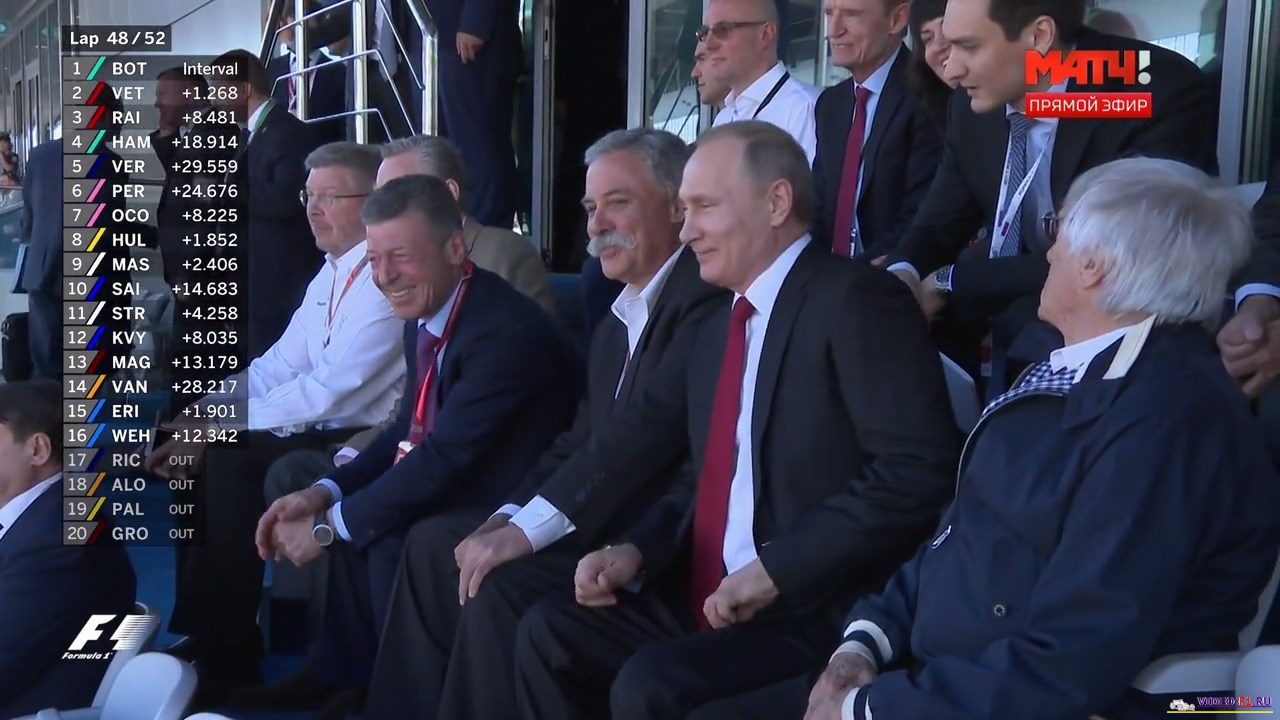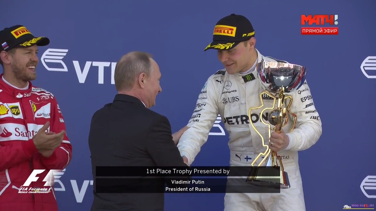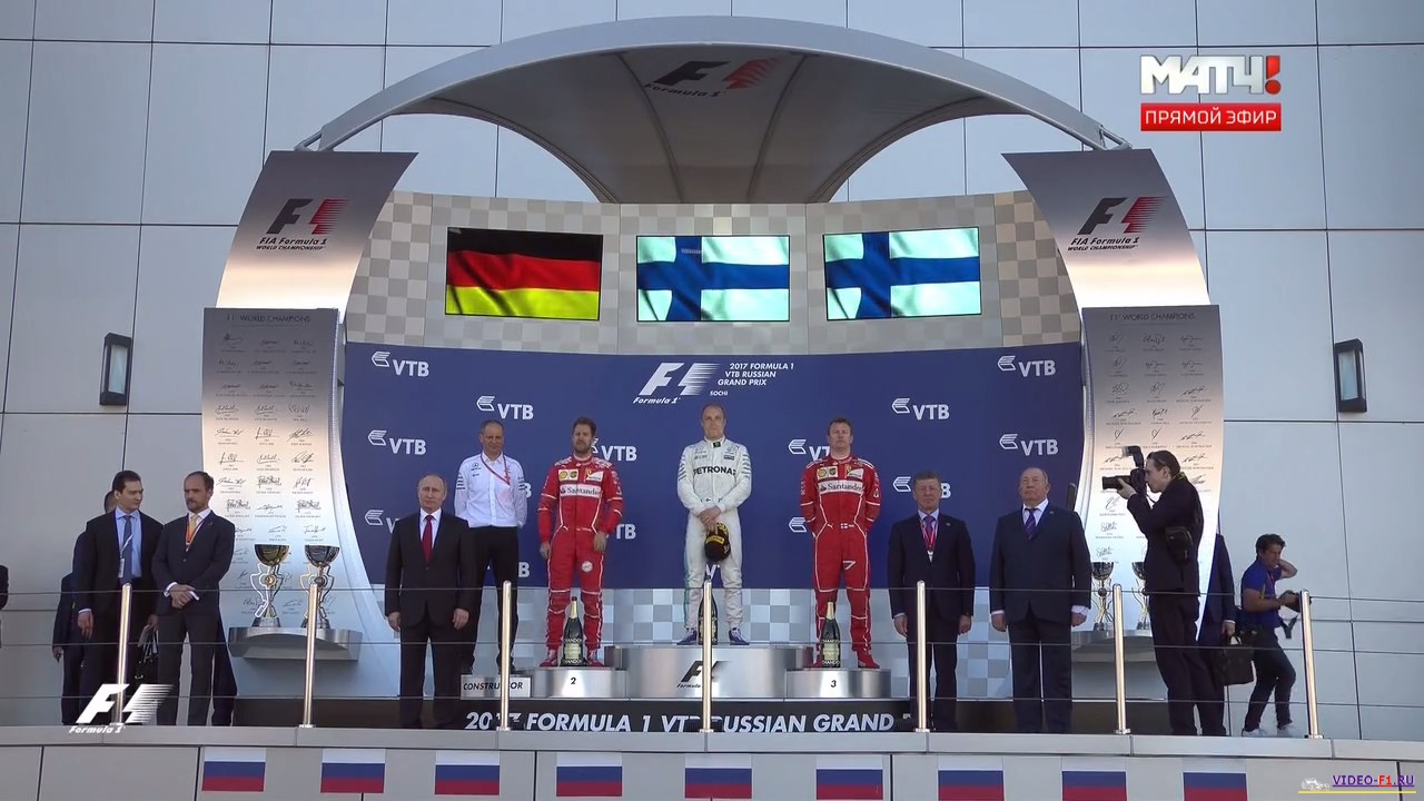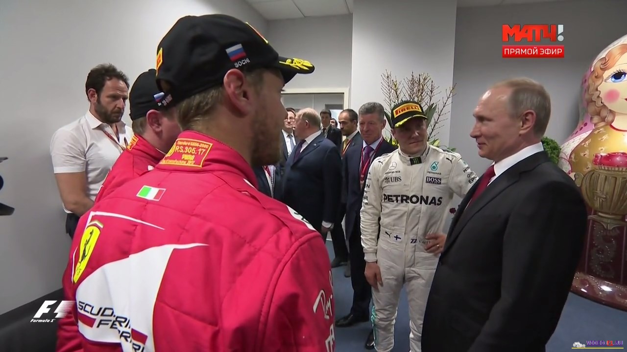 Путин поздравляет победителя на гран при Ф1 в Сочи 2017