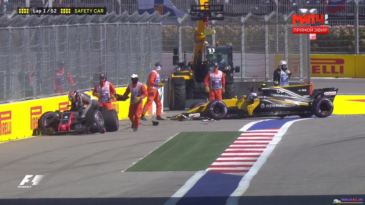 На первом круге из-за аварии Пальмера и Грожана на трассе появился пейскар.
