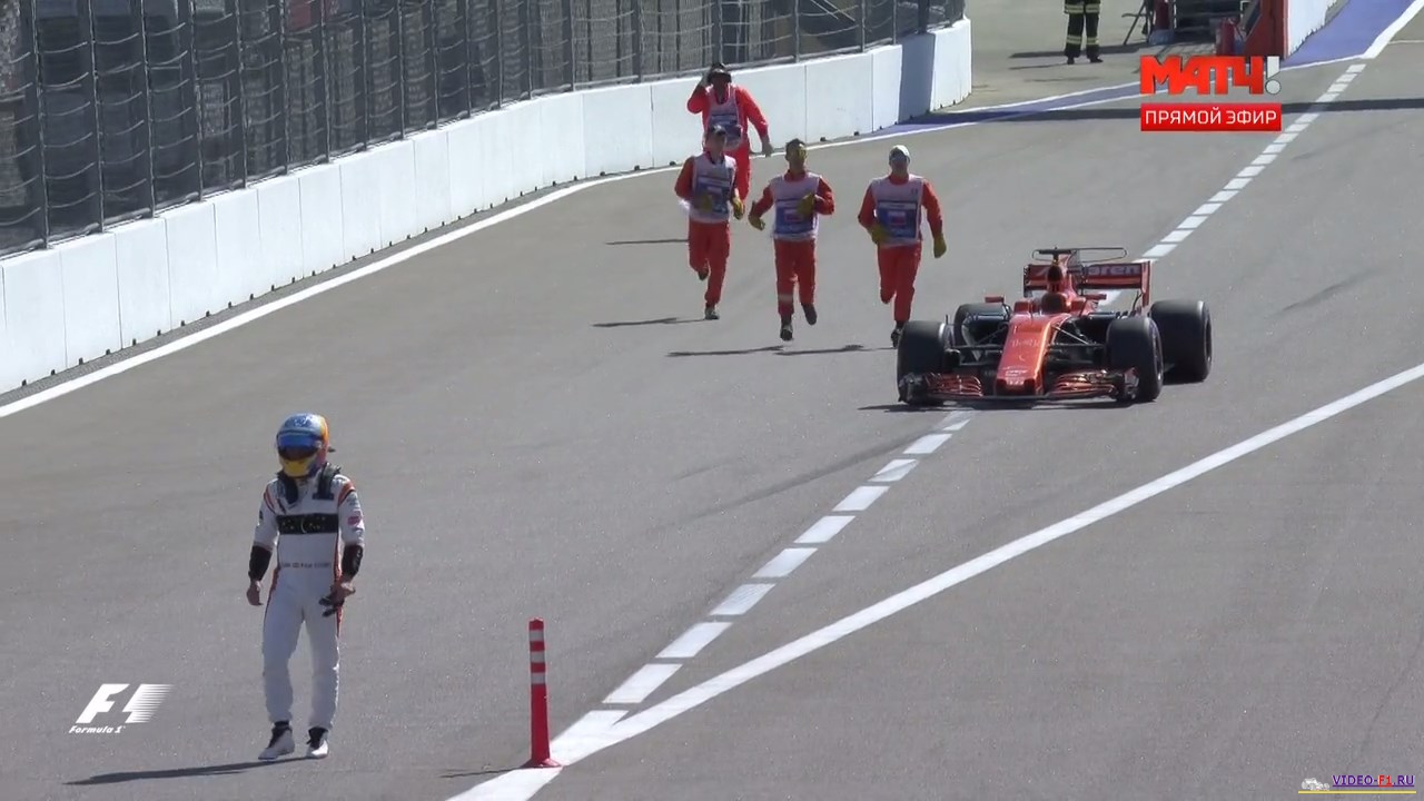 В гонке машина Фернандо Алонсо команды Макларен после прогревочного круга сломалась и гонщикам пришлось делать второй прогревочный круг. Алонсо сделал отчаянный жест.