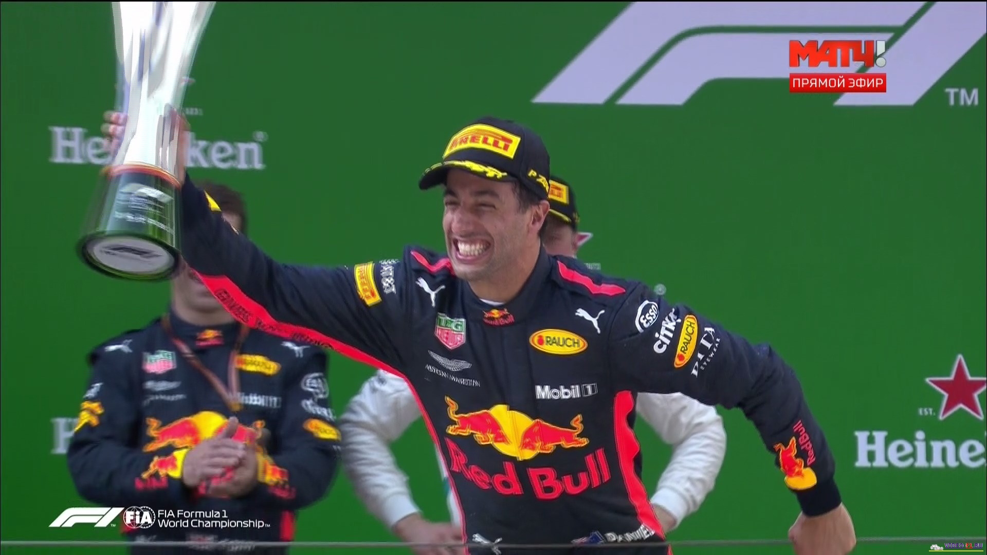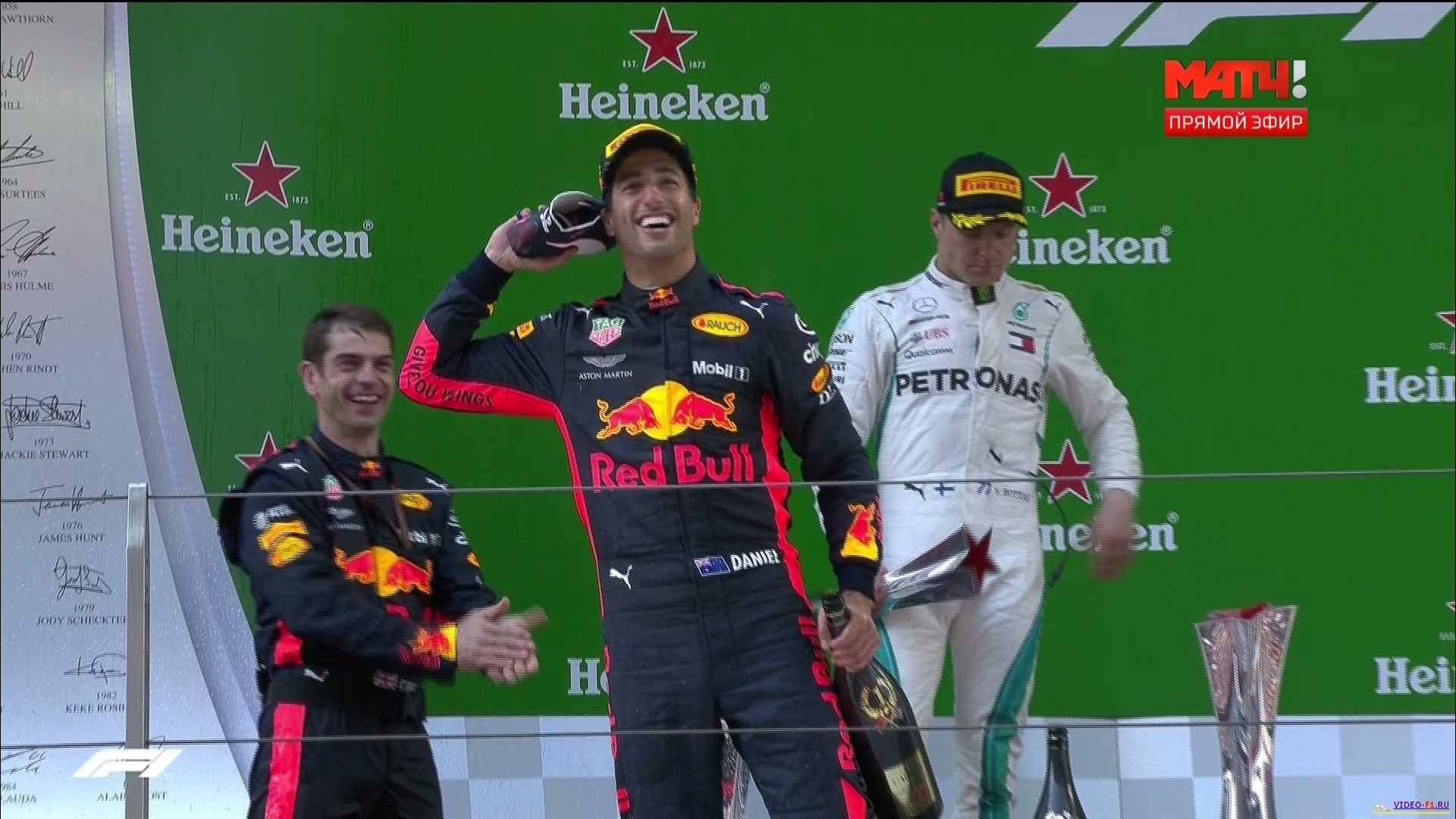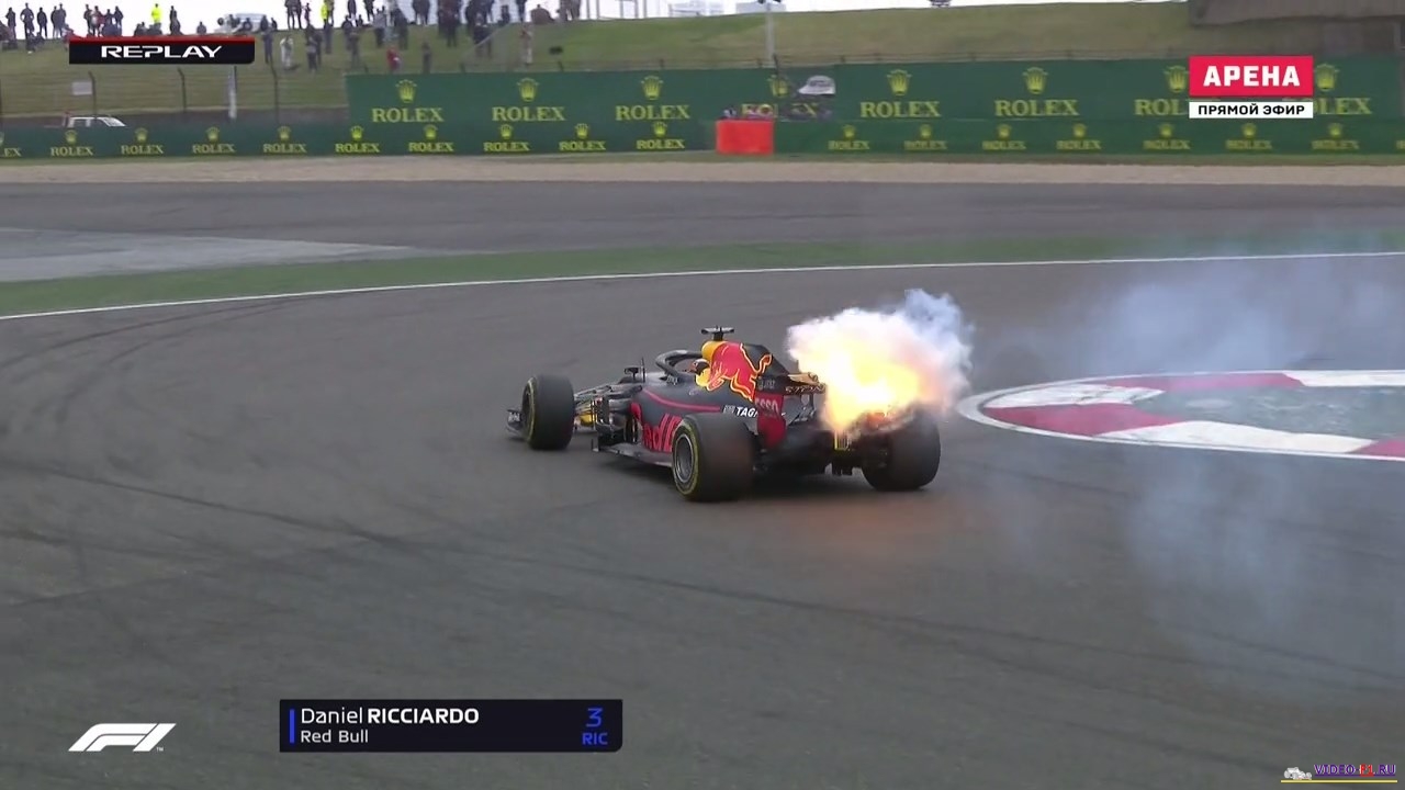 Формула-1 2018 Гран-при КитайФормула 1 Этап 3 - Гран-При КитайГород и название трассы: Китай, Шанхай (о трассе) Дата гонки: 15 апреля 2017 г Длина круга: 5.451 км Кол-во кругов: 56 Общая дистанция 305.066 км Комментаторы на матч тв: Алексей Попов и Наталья Фабричнова (Владимир Башмаков пятничные заезды) Краткий обзор гонки, что интересного было на гран при в Китае 3 практика Болид Хэмильтона очень красиво раскрутило 3 раза вокруг своей оси, как танец машины, после того как он заехал на скорости на мокрую траву. У Дэна Риккардо взорвался двигатель и из выхлопной трубы вышло много дыма и много огня. Гонка Ферстапен блокирует шины и выбивает Феттеля почти перед финишем, отодвигая его от борьбы за лидерство гонки. После пейскара редбулы вовремя поменяли резину и это сказалось на результате гонки в их пользу. Выиграл гонку медоед Даниель Риккардо как обычно выпил шампанского со своего гоночного ботинка и предложил выпить и работнику редбулла. На губе Рикьярдо очень большая шишка. Формула-1 - Результаты гран-при Китая 2018 Фото с уикенда Ф1 на гран при Китая Вы смотрите Формула-1 2018 Гран-при Китай