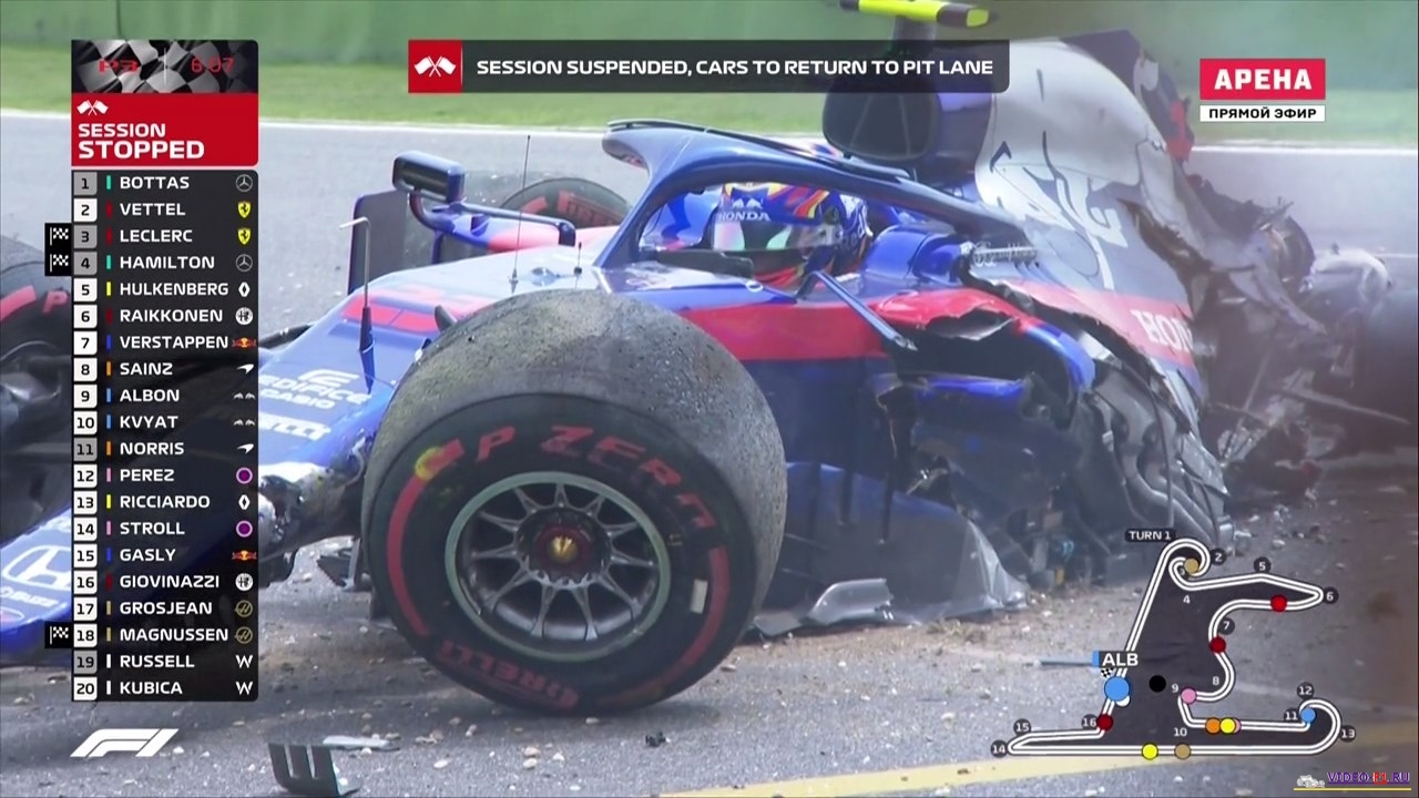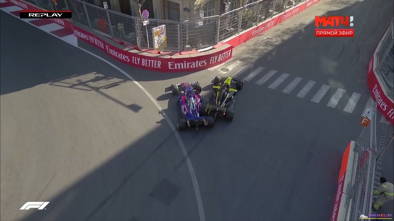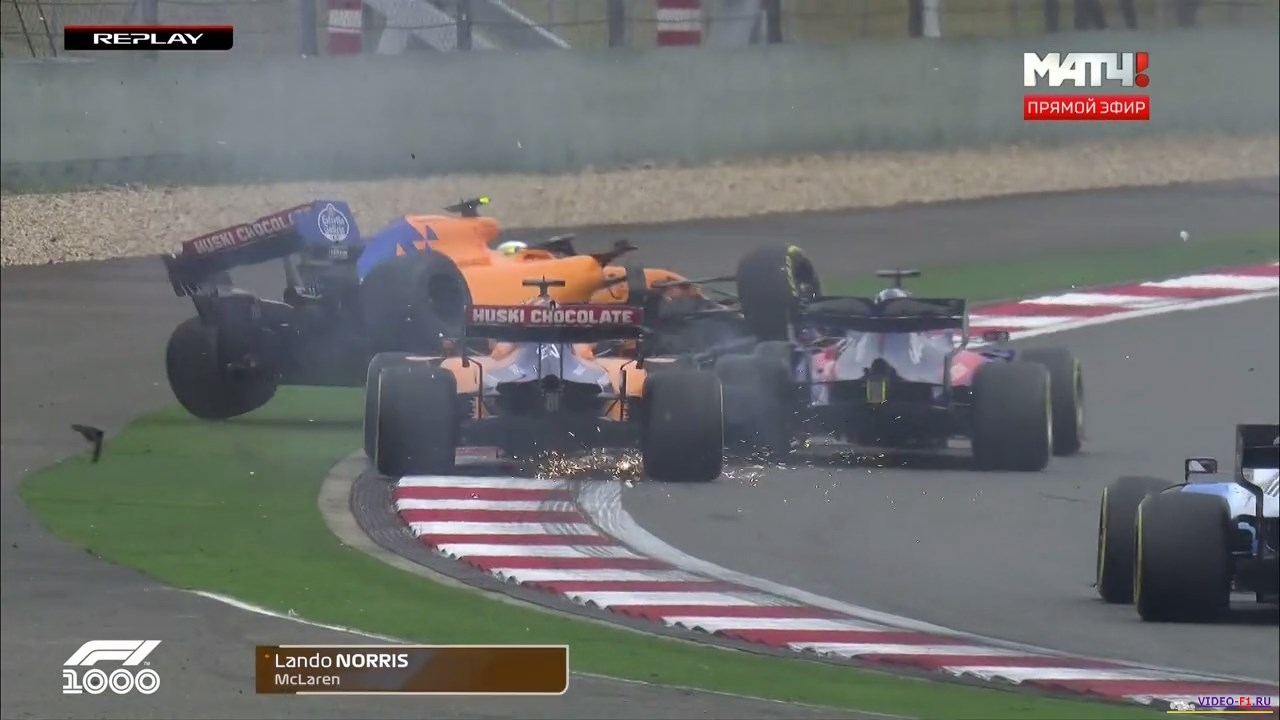 Гонка Россиянину Квяту опять не повезло. Впервые в истории гонок Формулы-1 произошла авария задним ходом. В Квята задним ходом врезался его бывший напарник Риккьярдо.