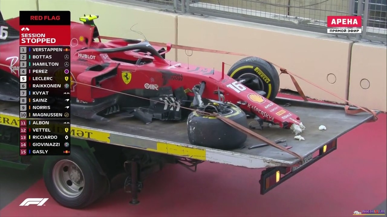 Формула 1 Этап 4 - Гран-При Баку - 1001-я гонка Ф1Город и название трассы: Азербайджан, Баку (о трассе)Дата гонки: 28 апреля 2019 гДлина круга: 6.003 KM Кол-во кругов: 51 Общая дистанция 306.049 KM Комментаторы на матч тв: Алексей Попов и Наталья Фабричнова (Владимир Башмаков пятничные заезды) Краткий обзор гонки, что интересного было на гран при в Баку 1 практика Джордж Рассел из команды Вилльямс между 2 и 3 поворотами воздушным потоком поднял канализационный люк на трассе который разбил все днище его болида. Люк был не заварен. Машина эвакуатор которая увозила болид с трассы, краном повредила пост и рекламу. Потом из крана потекло масло и начало капать на болид, которые сгружали потом вторым краном. Люк приподнял Лекрел, проехав по нему колесами. 1001 гонка формулы1