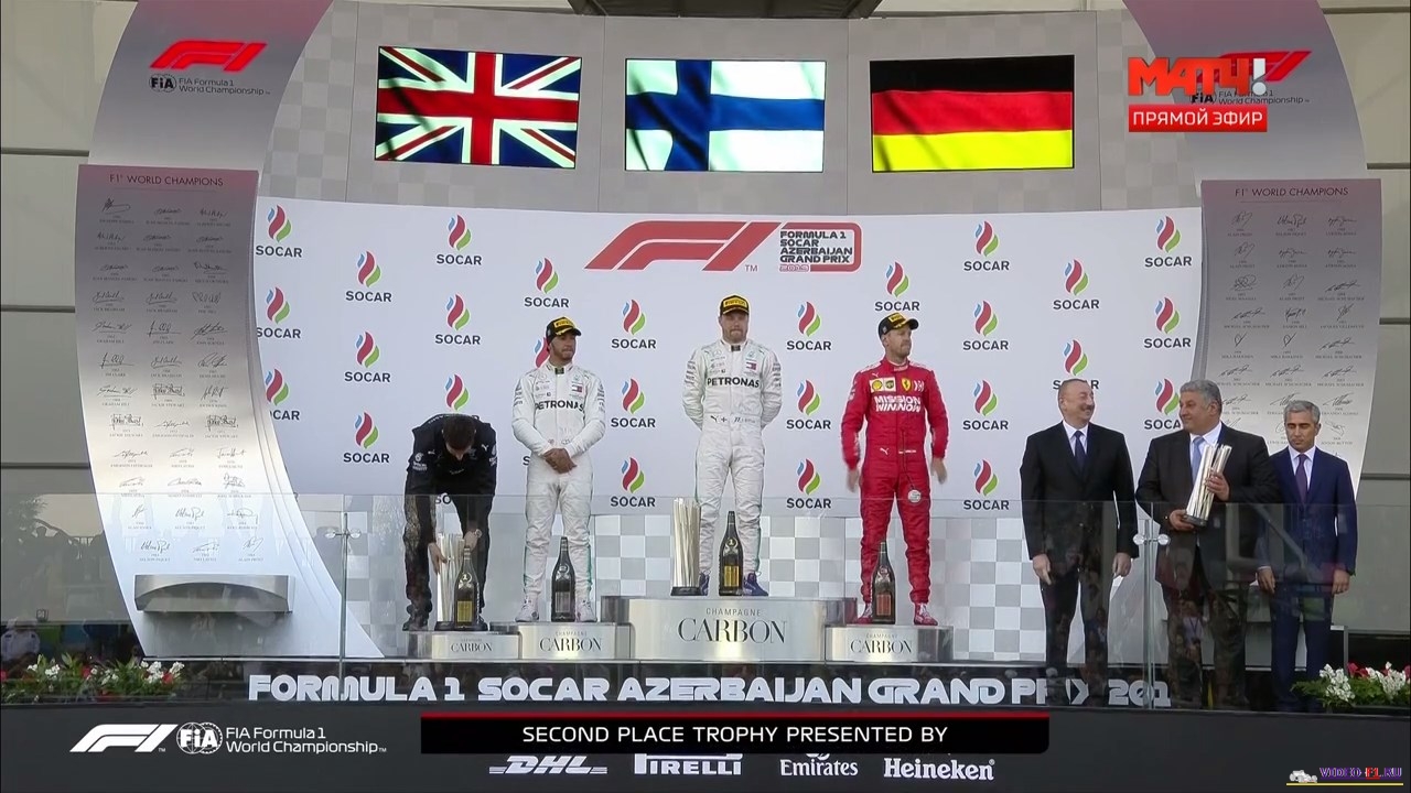 Результаты гонки 1 место (выиграл гонку) Боттас на Мерседесе 2 место - Хэмильтон Команда Мерседес 3 место - Себастьян Феттель на Феррари