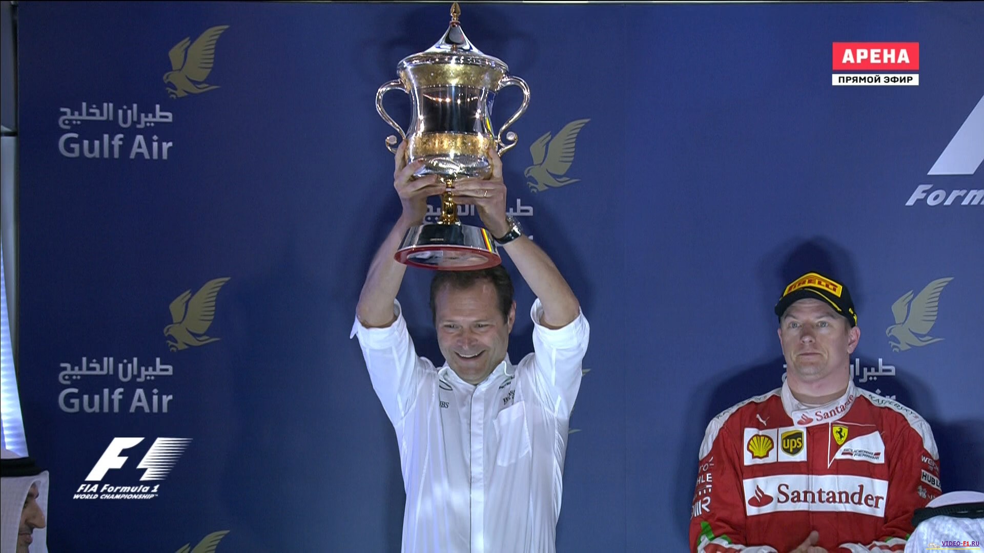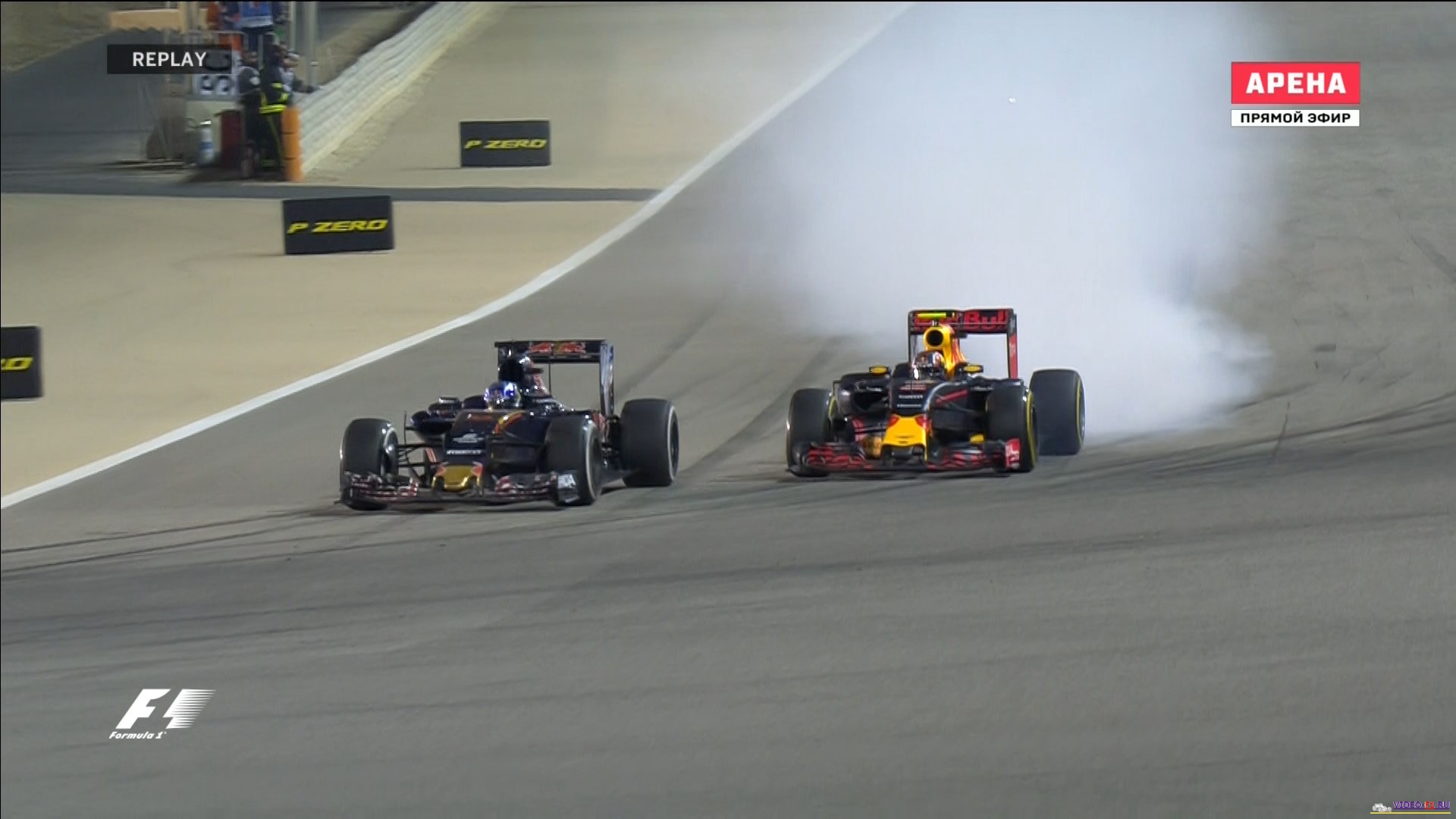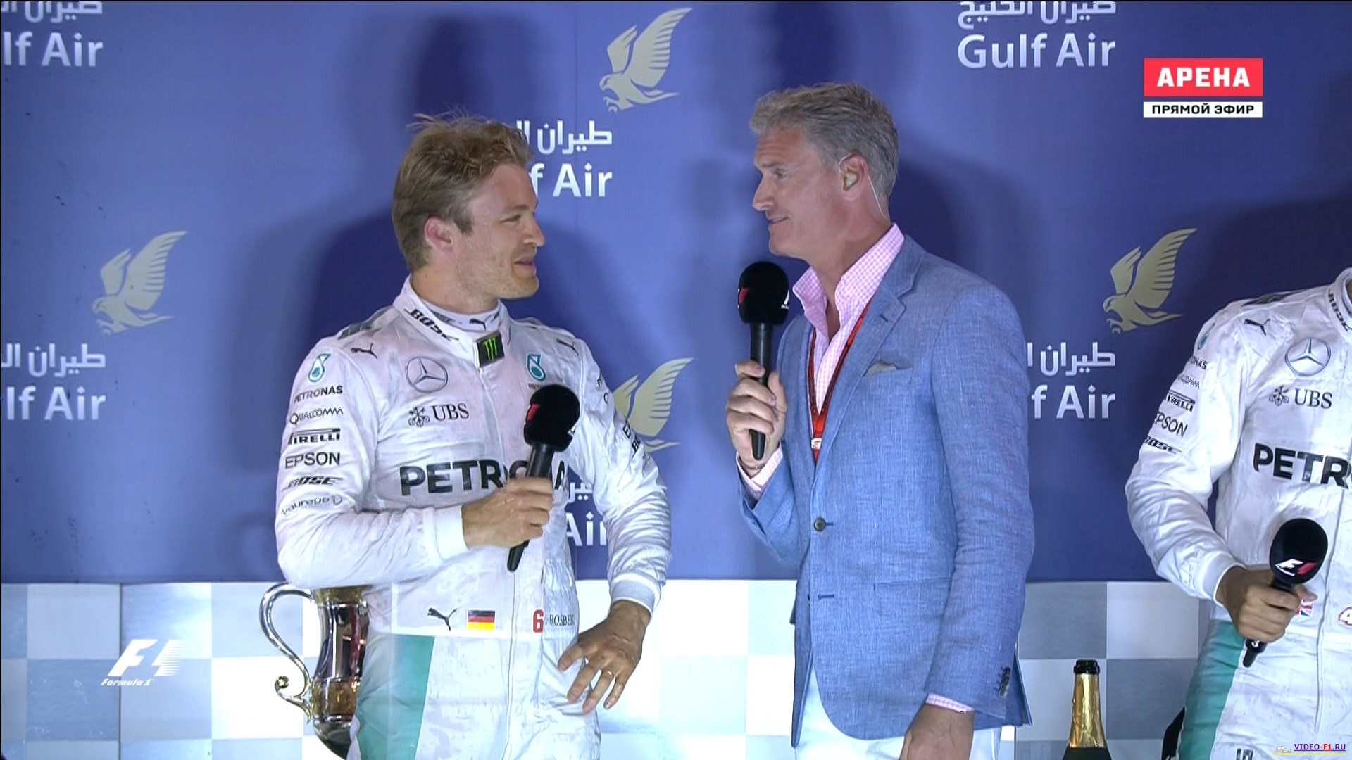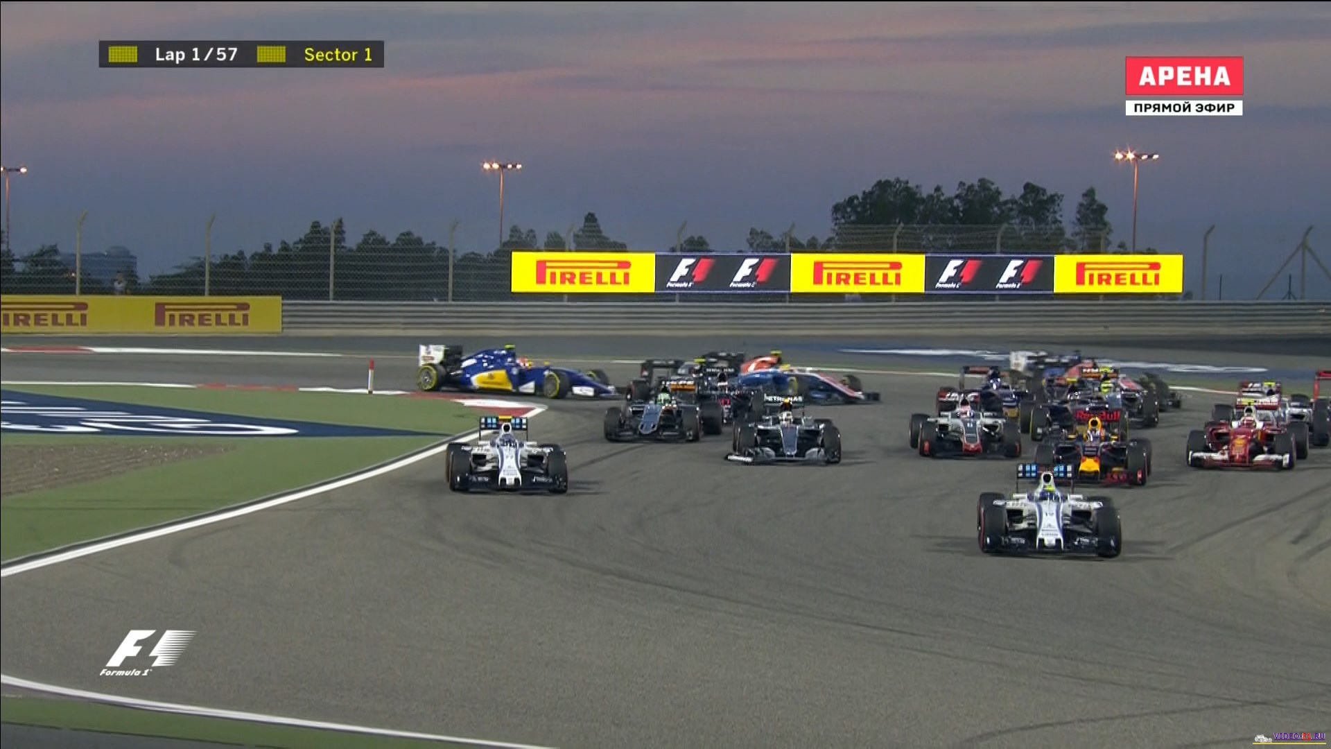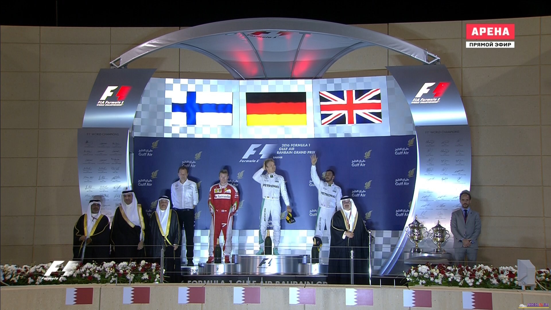 Описание 12-й в истории гран-при в маленьком государстве Бахрейна находящимся в Персидском заливе. Гонки проводятся с 2004 года (в 2006 и 2010 годах здесь даже начинался сезон). Гонка начинается на закате и плавно переходит в ночную. В 5 км от трассы находится музей нефти и первая скважина на территории Бахрейна, где в 1932 году впервые на Ближнем Востоке была обнаружена нефть. На прогревочном круге у Феттеля задымился мотор Феррари и он выбывает из гонки даже не стартовав. У Сайнза на втором круге разбортовывается колесо и резина совершает долгий проезд по трассе. На последнем круге была интересная борьба между Квятом и Массой за 7 место, в то время когда их на круг обходил лидер гонки Росберг и в своей борьбе они его чуть снова не обогнали.